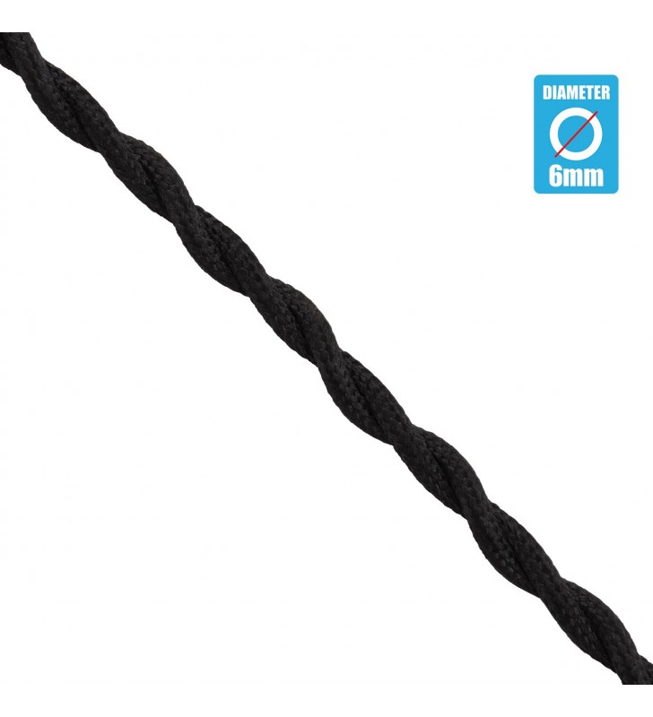 GloboStar 77620 Πλεκτό Υφασμάτινο Καλώδιο 1m 2 x 0.75mm² Μαύρο