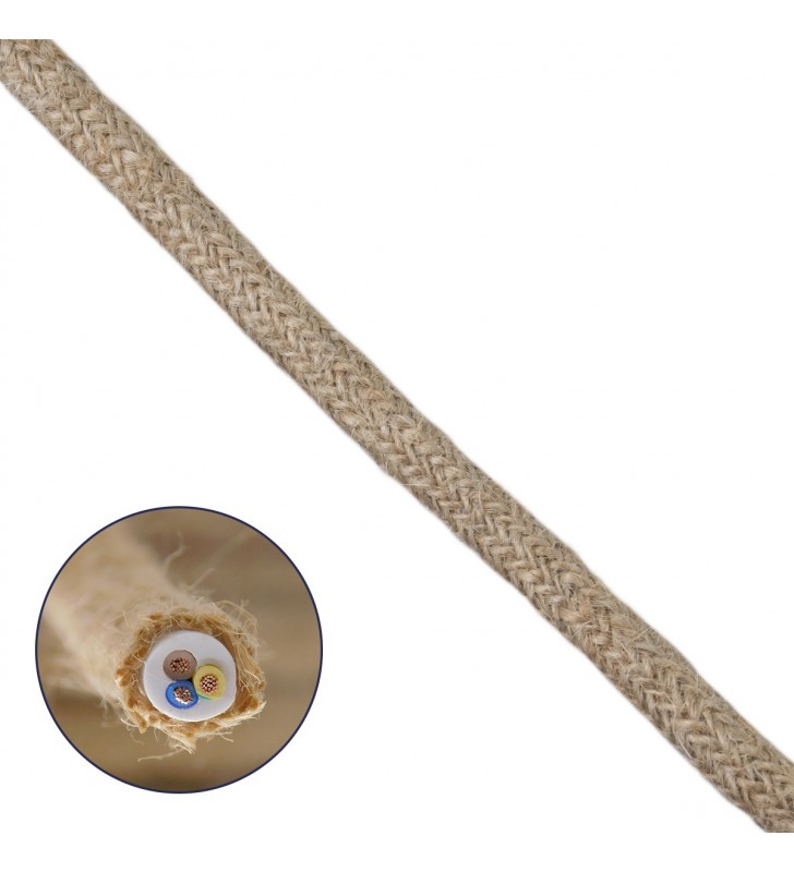 GloboStar 77641 Εύκαμπτο Σχοινί Τριχιά Πλεκτό 1m Φ 8mm Μπεζ με Εσωτ.Καλώδιο 3x0.75mm