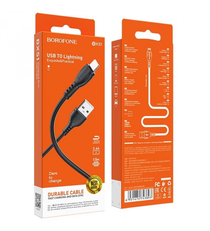 Καλώδιο σύνδεσης Borofone BX47 Coolway USB σε Lightning 2.4A 1μ Λευκό
