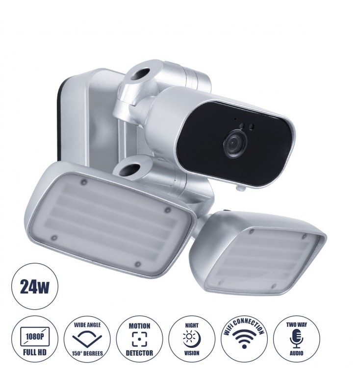 GloboStar 86044 Αυτόνομος Ηλιακός Προβολέας LED 24W με IP Camera 1080P 2MP WiFi - 6000K - Ασημί