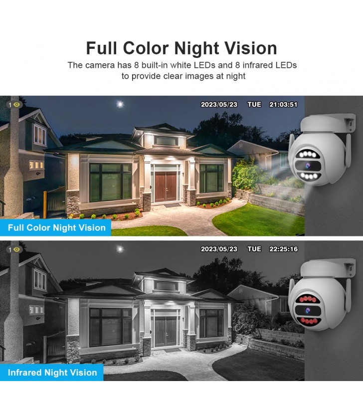 <li><strong>Συναγερμός</strong>: Προεπιλεγμένη νυχτερινή όραση μαύρου και άσπρου, τα φώτα θα ενεργοποιηθούν αυτόματα όταν ανιχνεύεται ανθρώπινη παρουσία και θα μεταβούν σε πλήρη χρωματική νυχτερινή όραση.</li>