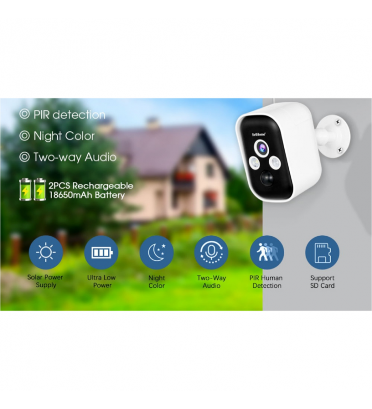 Νέο σύστημα ασφαλείας SH033B από την <strong>Srihome</strong>. Διαθέτει εύκολη ασύρματη εγκατάσταση, ενώ η κάμερα λειτουργεί με <strong>2</strong> επαναφορτιζόμενες μπαταρίες 18650 (συμπεριλαμβανονται) , για να μην χρειάζεστε συνεχώς τροφοδοσία ρεύματος.