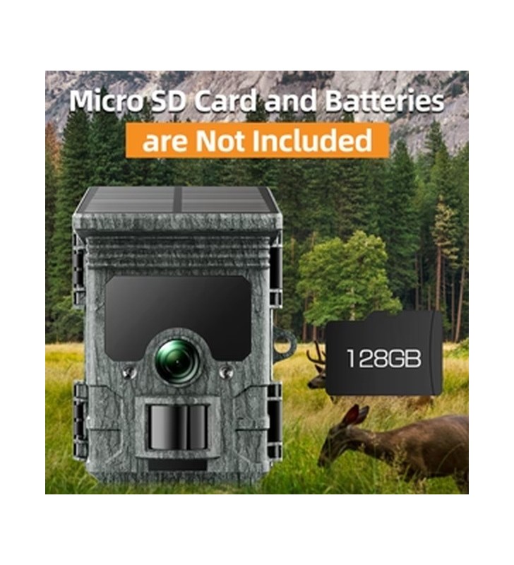 ?Σύνδεση Bluetooth WiFi & Έλεγχος APP?: Αυτή η κάμερα ίχνους ηλιακού πάνελ διαθέτει λειτουργία wifi Bluetooth, η οποία επιτρέπει την προεπισκόπηση και λήψη φωτογραφιών και βίντεο στην εφαρμογή (IOS:"Game Camera Pro", Android: "Game Camera pro2") στο smartphone. Όταν θέλετε να ρυθμίσετε την κάμερα, δεν χρειάζεται να την αφαιρέσετε, απλώς ρυθμίστε την μέσω του τηλεφώνου σας. (Συμβουλές: Το wifi δεν είναι οικιακό wifi, είναι η ίδια η κάμερα που έχει ένα hot spot. Το wifi της κάμερας trail έχει όριο απόστασης.)