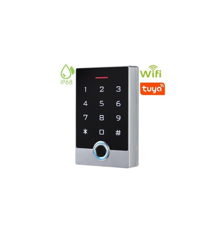 - Τρόποι έλεγχου πρόσβασης: Δακτυλικό αποτύπωμα (fingerprint), κάρτα EM 125 Khz, κωδικός (PIN) ή μέσω της εφαρμογής TUYA