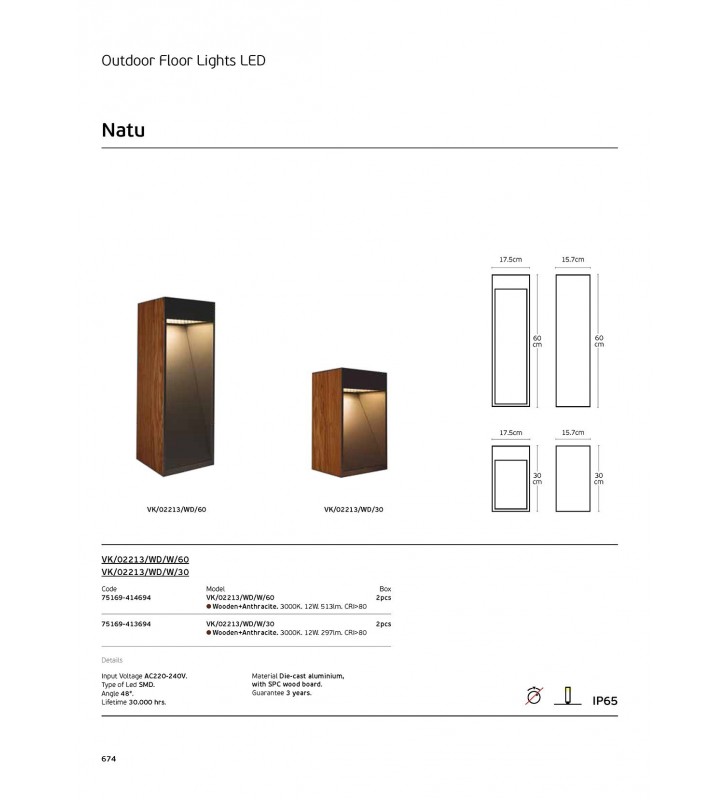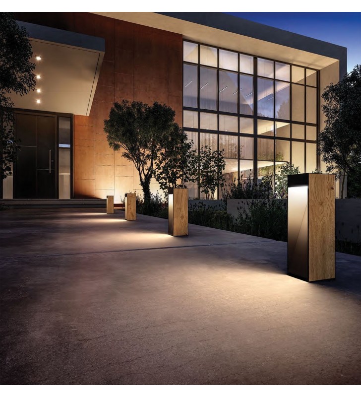 NATU Φωτιστικό δαπέδου εξωτερικού χώρου LED, 220-240V, Ξύλο+ανθρακί. 3000K. 12W. 297lm. 48°, CRI>80. IP65, L30cm