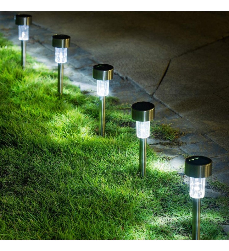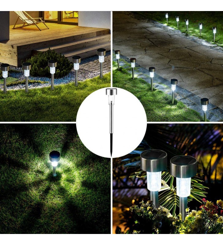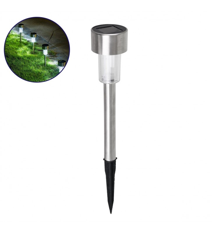GloboStar® 71520 Αυτόνομο Ηλιακό Φωτιστικό LED SMD 1W 100lm με Ενσωματωμένη Μπαταρία 600mAh - Φωτοβολταϊκό Πάνελ με Αισθητήρα Ημέρας-Νύχτας Αδιάβροχο IP65 Φανάρι Κήπου Στρογγυλό Ψυχρό Λευκό 6000K. με λευκό (ψυχρό) φως. Διαθέτει ΙΝΟΧ σκελετό και πλαστικό καπέλο σε μπομπέ σχήμα.
