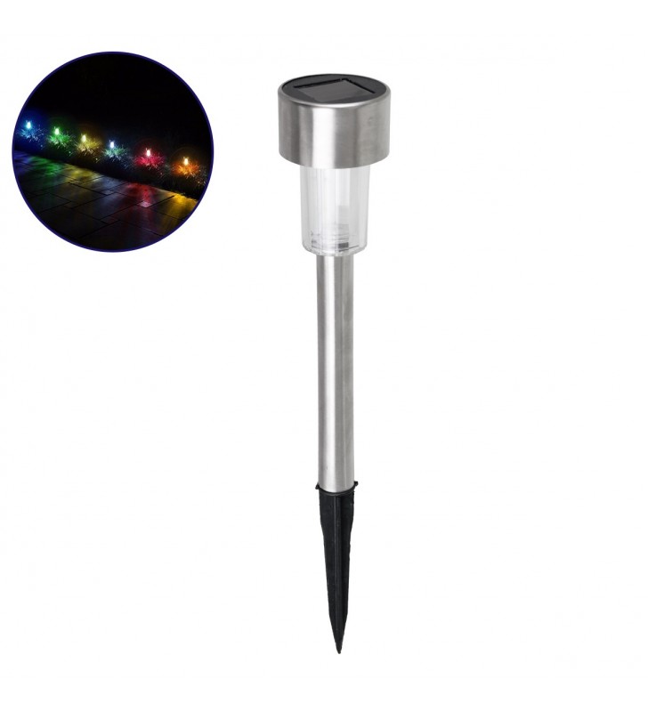GloboStar® 71522 Αυτόνομο Ηλιακό Φωτιστικό LED SMD 1W 90lm με Ενσωματωμένη Μπαταρία 600mAh - Φωτοβολταϊκό Πάνελ με Αισθητήρα Ημέρας-Νύχτας Αδιάβροχο IP65 Φανάρι Κήπου Στρογγυλό Πολύχρωμο RGB. με Πολύχρωμο φως. Διαθέτει ΙΝΟΧ σκελετό και πλαστικό καπέλο σε μπομπέ σχήμα.