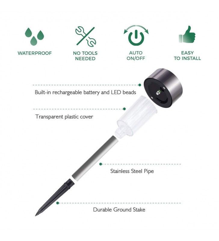 GloboStar 69927 ΣΕΤ 4 Τεμαχίων Αυτόνομα Ηλιακά Φωτιστικά LED SMD 6000K Φ12 x Υ23cm