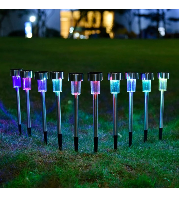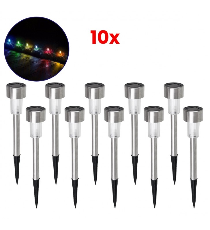 GloboStar 71522-10 ΣΕΤ 10 Τεμαχίων Αυτόνομα Ηλιακά Φωτιστικά LED 1W Φανάρι Κήπου Στρογ. RGB
