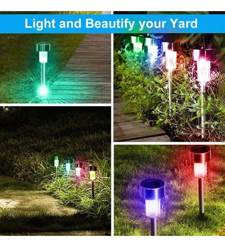 GloboStar® 71522-10 ΣΕΤ 10 Τεμαχίων Αυτόνομα Ηλιακά Φωτιστικά LED SMD 1W 90lm με Ενσωματωμένη Μπαταρία 600mAh - Φωτοβολταϊκό Πάνελ με Αισθητήρα Ημέρας-Νύχτας Αδιάβροχο IP65 Φανάρι Κήπου Στρογγυλό Πολύχρωμο RGB. με πολύχρωμο RGB φως. Διαθέτει ΙΝΟΧ σκελετό και πλαστικό καπέλο σε μπομπέ σχήμα.