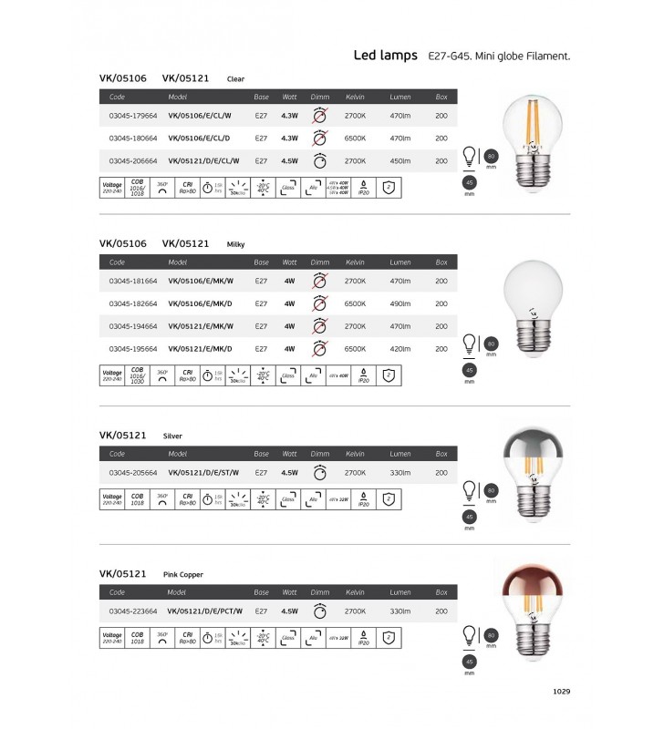Λάμπα Led, E27, 4.5W, 2700Κ, 330lm, Dimmable, μίνι σφαίρα, Filament, ασημί