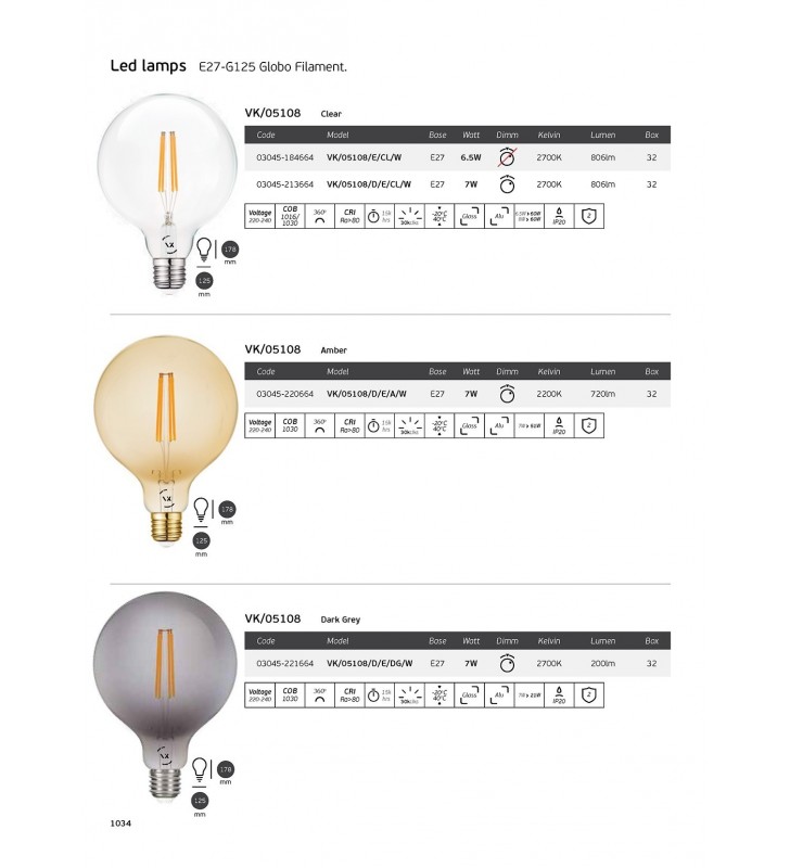 Λάμπα Led, E27, 7W, 2200Κ, 720lm, Dimmable, σφαίρα, Filament, κεχριμπάρι