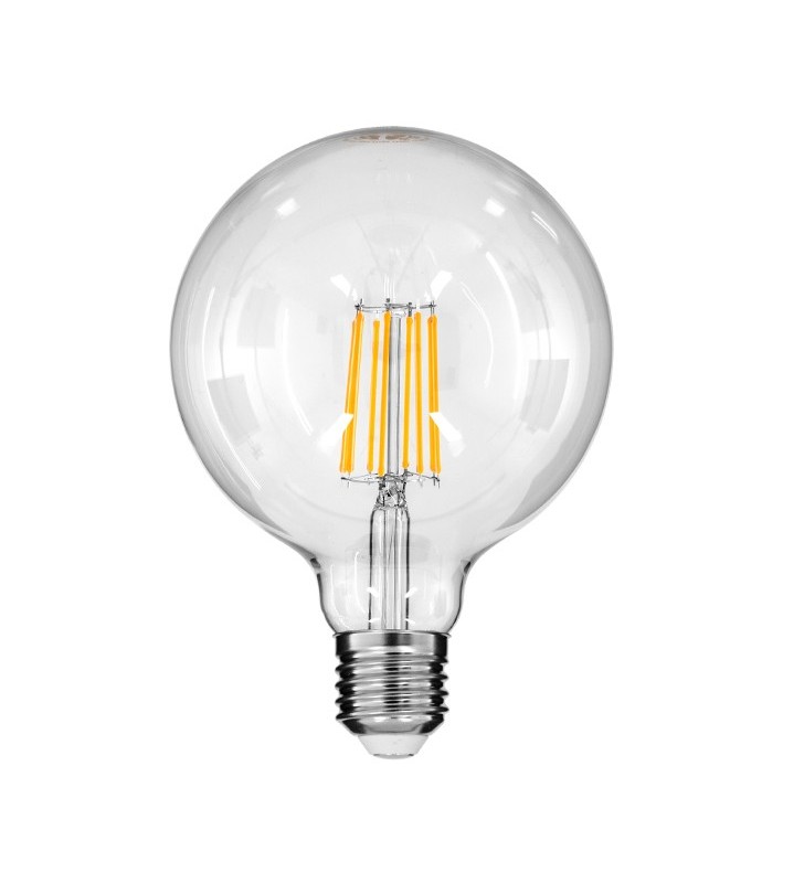 GloboStar® 99014 Λάμπα E27 G125 Γλόμπος LED LONG FILAMENT 12W 1320 lm 320° AC 85-265V Edison Retro με Διάφανο Γυαλί Θερμό Λευκό 2700 K Dimmable