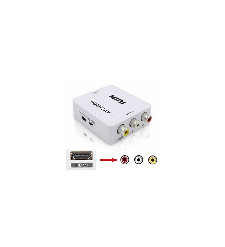 Ο ANGA PS-M640 μετατροπέας HDMI σε αναλογικό σήμα εικόνας και ήχου AV. Μας δίνει την δυνατότητα να συνδέσουμε μία πηγή (όπως PC, Laptop, DVD player, Playstation, κ.α.) με έξοδο HDMI σε μία παλιά τηλεόραση που έχει είσοδο AV εικόνας και ήχου (κίτρινο, κόκκινο και άσπρο RCA). Λειτουργεί με τροφοδοσία USB (5V) και για το λόγο αυτό, περιλαμβάνει στην συσκευασία του καλώδιο τροφοδοσία με άκρο USB για άμεση τροφοδότηση από θύρα USB. Δεν περιλαμβάνει καλώδια σύνδεσης HDMI & RCA. Χαρακτηριστικά λειτουργίας: Ψηφιακή είσοδος σήματος HDMI (με θηλυκό βύσμα πάνω στον μετατροπέα) Έξοδος αναλογικού σήματος σήματος Video με RCA θηλυκό (κίτρινο) Έξοδος αναλογικού ήχου L/R με 2x RCA θηλυκά (Κόκκινο--Άσπρο) Τροφοδοσία από USB (περιλαμβάνει καλώδιο USB για τροφοδοσία) Επιλογέας σήματος Video (NTSC/PAL). Τεχνικά Χαρακτηριστικά: Input Port: 1xHDMI Female Output Port: 3 x RCA (κίτρινο, άσπρο, κόκκινο) Μέγιστη ανάλυση εισίδου HDMI: 1080p (1920x1080@50Hz) Τροφοδοσία: USB 5V DC (περιλαμβάνει καλώδιο USB για τροφοδοσία από PC/Laptop) Βάρος: 40gr Διαστάσεις: 66 x 55 x 20 mm (MxΠxΥ) Περιλαμβάνει στην συσκευασία: Μετατροπέα PS-M640 Καλώδιο τροφοδοσίας USB Manual στα Αγγλικά