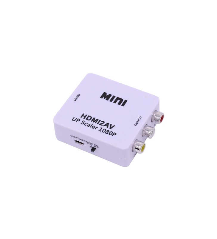 Ο ΜΙΝΙ HDMI2AV converter είναι ένας universal κονβέρτορας με HDMI 1080p (60Hz) είσοδο σε αναλογική έξοδο.Η μεταροπή από digital σε analog γίνεται αυτόματα προσφέροντας την εμπειρία των πιο ρεαλιστικών βίντεο και HD visuals. Χαρακτηριστικά 1.Δεν χρειάζεται εγκατάσταση driver,μικρό και άνετο στη μεταφορά,γρήγορη σύνδεση. 2.Προσφέρει εξελιγμένο σήμα επεξεργασίας ,με μεγάλη ακρίβεια στα χρώματα και τις λεπτομέρειες. 3.Κατάλληλο για εξόδους PAL,NTSC3.58,NTSC4.43,SECAM,PAL/M,PAL/N και είσοδο απλού φρομάτ τηλεόρασης. 4.Κατάλληλο για εισόδους HDMI 1080p ή 720p. 5.Βάρος :40gr 6.Διαστάσεις:66mmx55mmx20mm