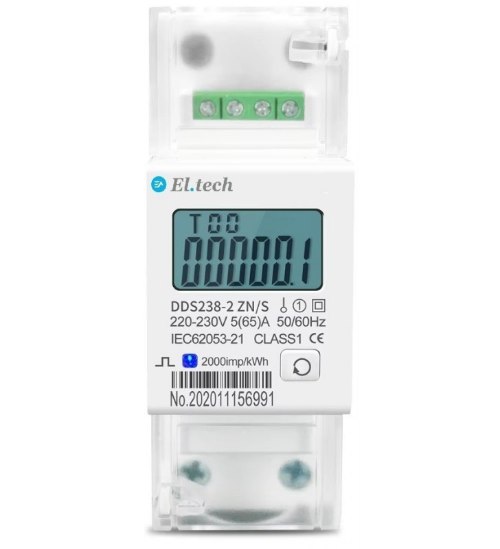 ΜΕΤΡΗΤΗΣ ΕΝΕΡΓΕΙΑΣ ΨΗΦΙΑΚΟΣ 1Φ 65Α 240V DDS238-2ZN/S - EL.TECH