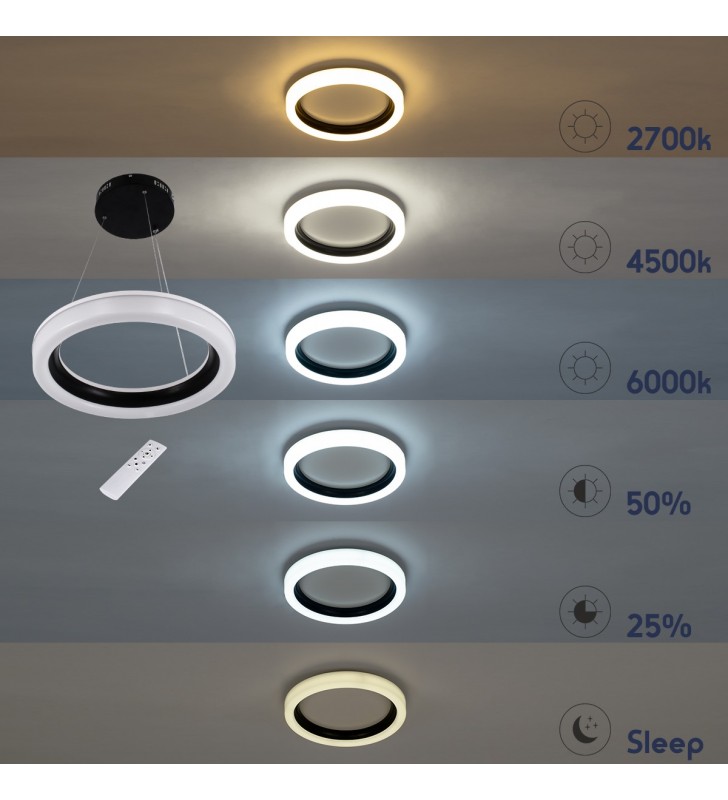 GloboStar® ARIANA 61038 Κρεμαστή Πλαφονιέρα Οροφής Κύκλος LED CCT 55W 6376lm 120° AC 220-240V - Εναλλαγή Φωτισμού μέσω Τηλεχειριστηρίου All In One Ψυχρό Λευκό 6000k+Φυσικό Λευκό 4500k+Θερμό Λευκό 2700k Dimmable Φ48cm - Λευκό - 3 Years Warranty