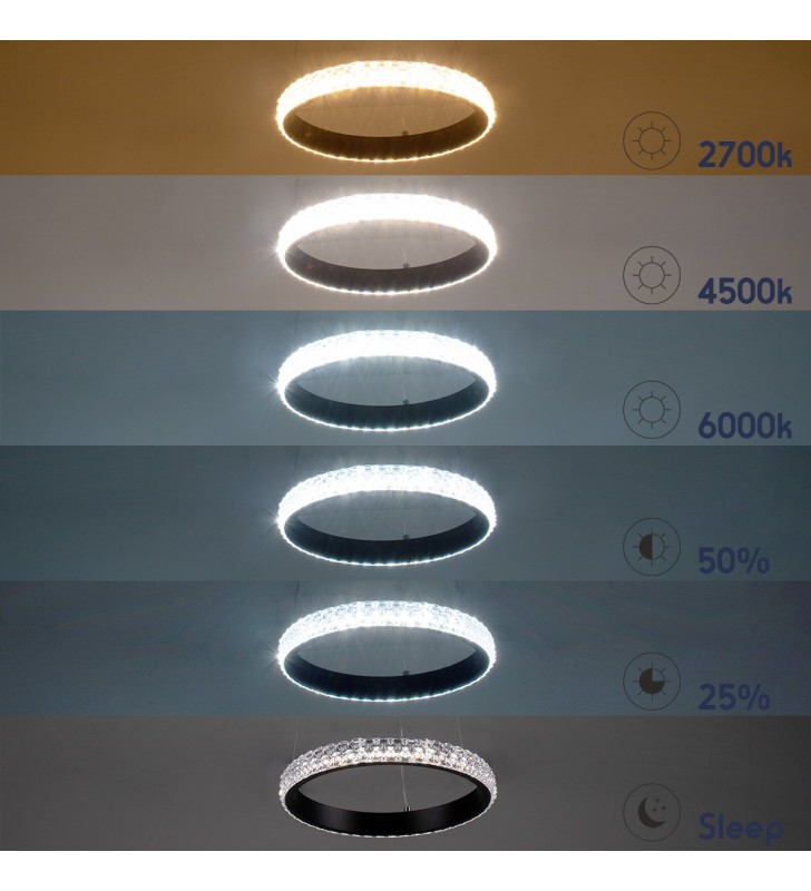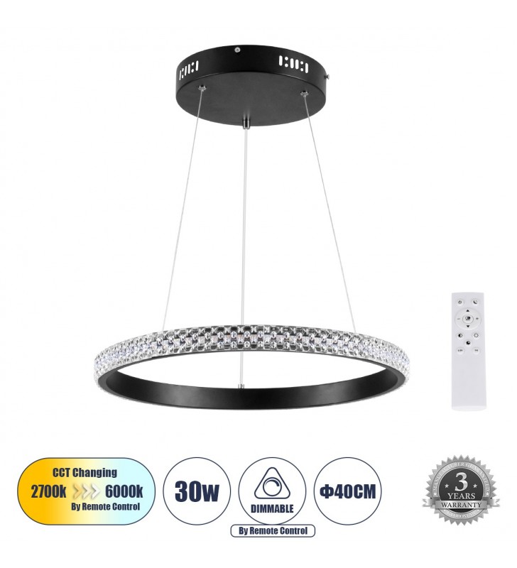 GloboStar® DIAMOND 61128 Κρεμαστό Φωτιστικό Δαχτυλίδι-Κύκλος LED CCT 30W 3513lm 360° AC 220-240V - Εναλλαγή Φωτισμού μέσω Τηλεχειριστηρίου All In One Ψυχρό 6000k+Φυσικό 4500k+Θερμό 2700k Dimmable Φ40cm - Μαύρο - 3 Years Warranty