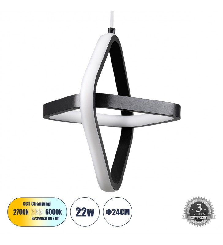 GloboStar® ROSE 61064 Κρεμαστό Φωτιστικό Οροφής Design LED CCT 22W 2640lm 300° AC 220-240V - Εναλλαγή Φωτισμού μέσω Διακόπτη On/Off All In One Ψυχρό 6000k+Φυσικό 4500k+Θερμό 2700k Μ24 x Π22 x Υ24cm - Μαύρο