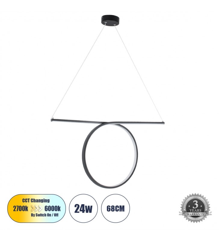 GloboStar® ROME 61294 Κρεμαστό Φωτιστικό Οροφής Linear Design LED CCT 24W 2640lm 200° AC 220-240V - Εναλλαγή Φωτισμού μέσω Διακόπτη On/Off All In One Ψυχρό 6000k+Φυσικό 4500k+Θερμό 2700k Μ65.5 x Π4 x Υ33cm - Μαύρο - 3 Years Warranty