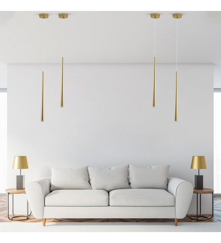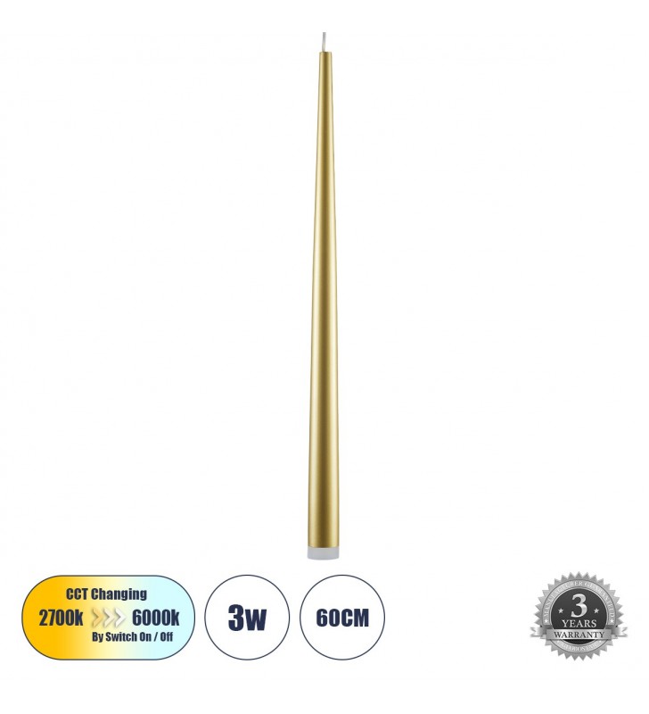GloboStar® TEARS 61310 Κρεμαστό Φωτιστικό Οροφής Design LED CCT 3W 330lm 180° AC 220-240V - Εναλλαγή Φωτισμού μέσω Διακόπτη On/Off All In One Ψυχρό 6000k+Φυσικό 4500k+Θερμό 2700k Φ3.2 x Υ51.5cm - Χρυσό Βούρτσας - 3 Years Warranty