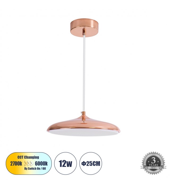 GloboStar® BARON 61253 Κρεμαστή Πλαφονιέρα Οροφής LED CCT 12W 1440lm 120° AC 220-240V - Εναλλαγή Φωτισμού μέσω Διακόπτη On/Off All In One Ψυχρό 6000k+Φυσικό 4500k+Θερμό 2700k Φ25 x Υ8cm - Χάλκινο Πλατίνα - 3 Years Warranty