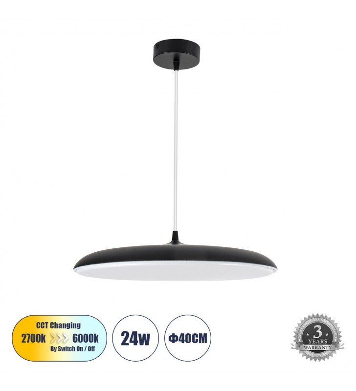 GloboStar BARON 61251 Κρεμαστή Πλαφονιέρα Οροφής LED CCT 12W Φ25 x Υ8cm - Μαύρο