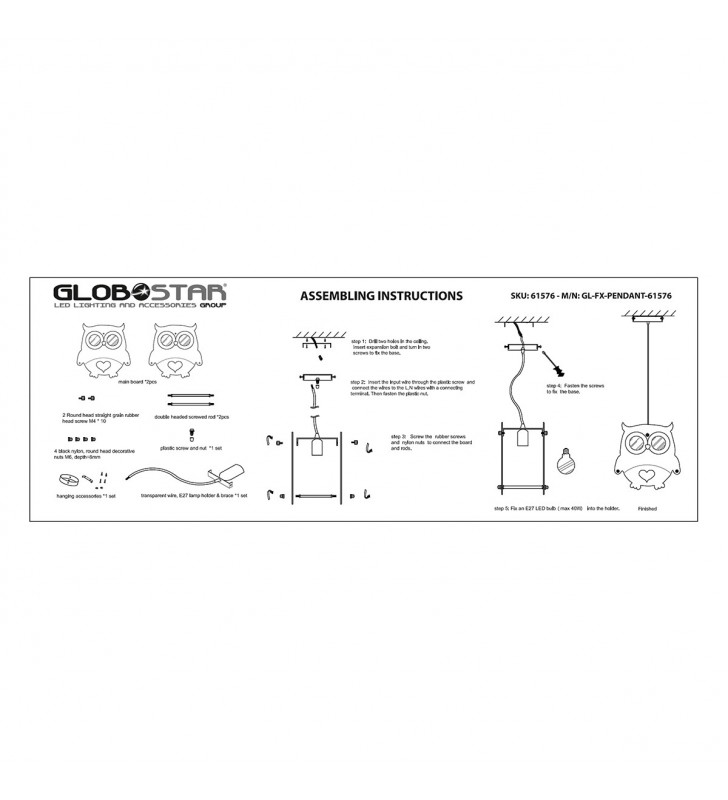 Caution - Προσοχή : Bulb is not included in the Packing - Ο Λαμπτήρας δεν Περιλαμβάνεται στη Συσκευασία