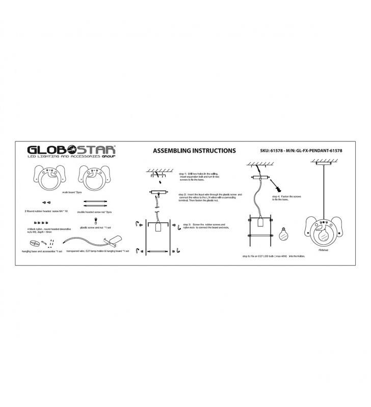 Κρεμαστό Φωτιστικό Οροφής Μονόφωτο Καφέ Σκουριά Μεταλ. Φ20 GloboStar LITTLE MAN IRON RUST 01653