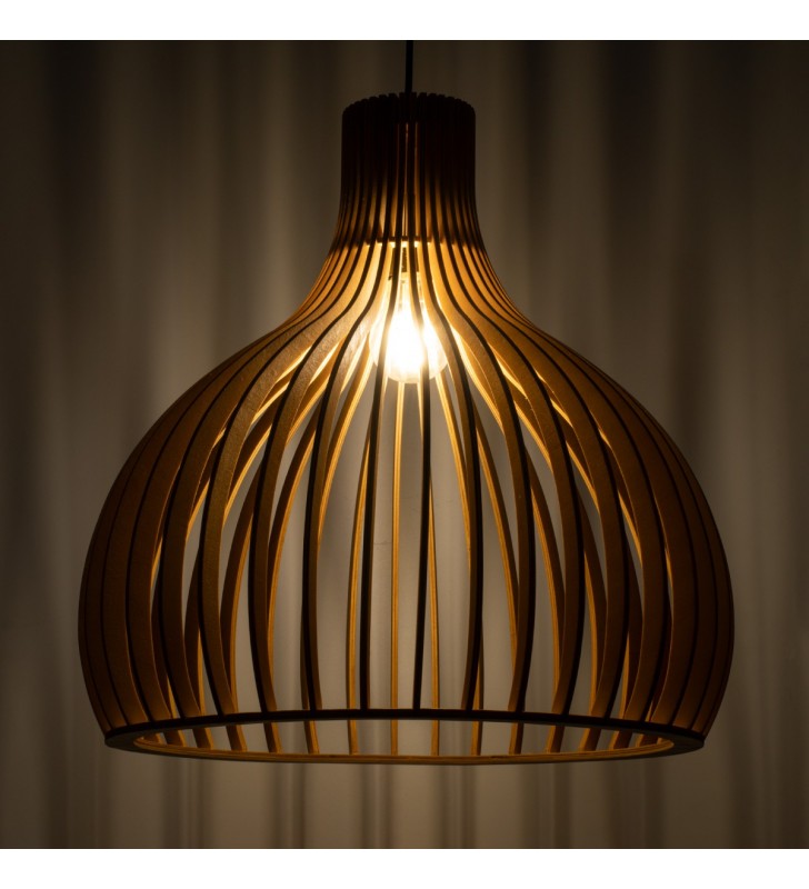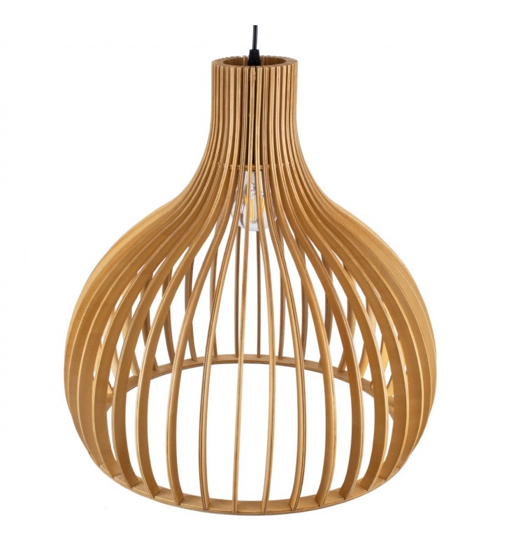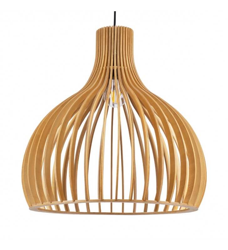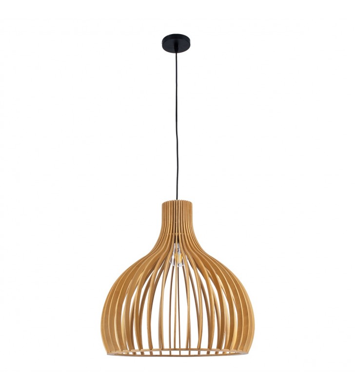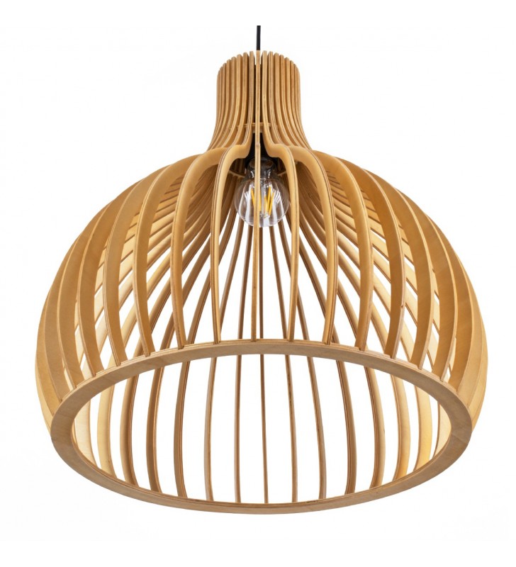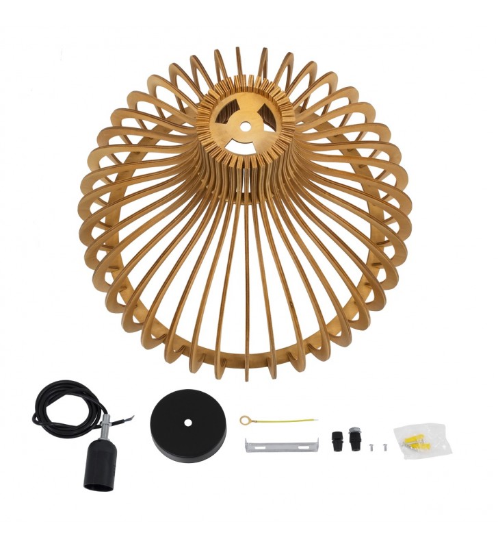 GloboStar® SCANDINAVIA 01701 Μοντέρνο Κρεμαστό Φωτιστικό Οροφής Μονόφωτο 1 x E27 Μπεζ Ξύλινο Πλέγμα Φ45 x Υ45cm