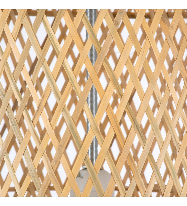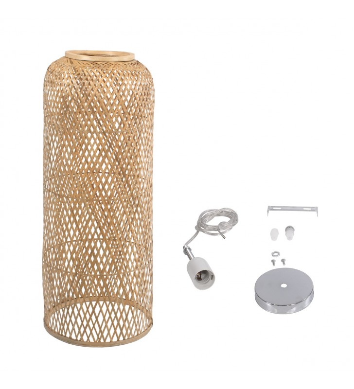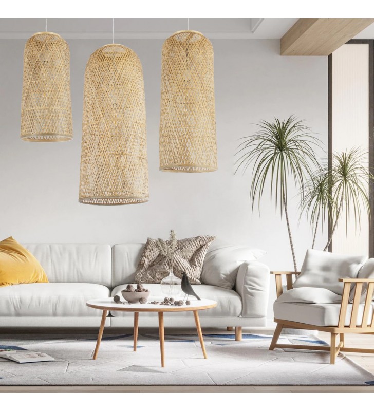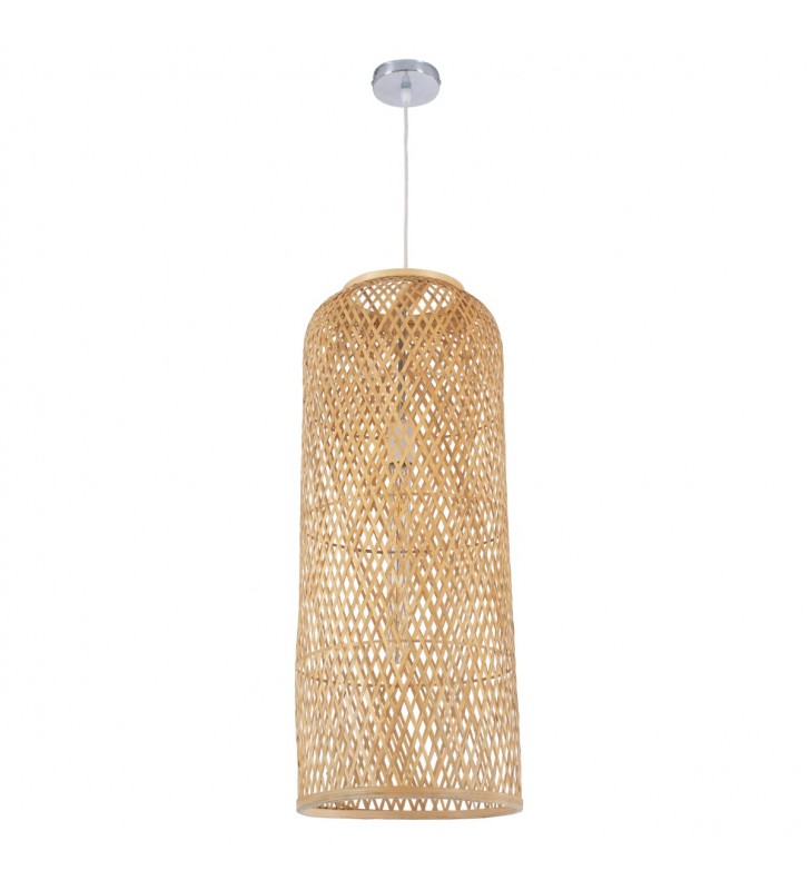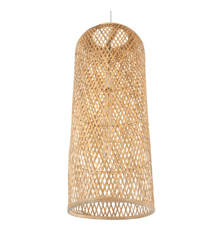 GloboStar® CALERO 01711 Μοντέρνο Κρεμαστό Φωτιστικό Οροφής Μονόφωτο 1 x E27 Μπεζ Μπαμπού Καμπάνα Φ30 x Υ70cm