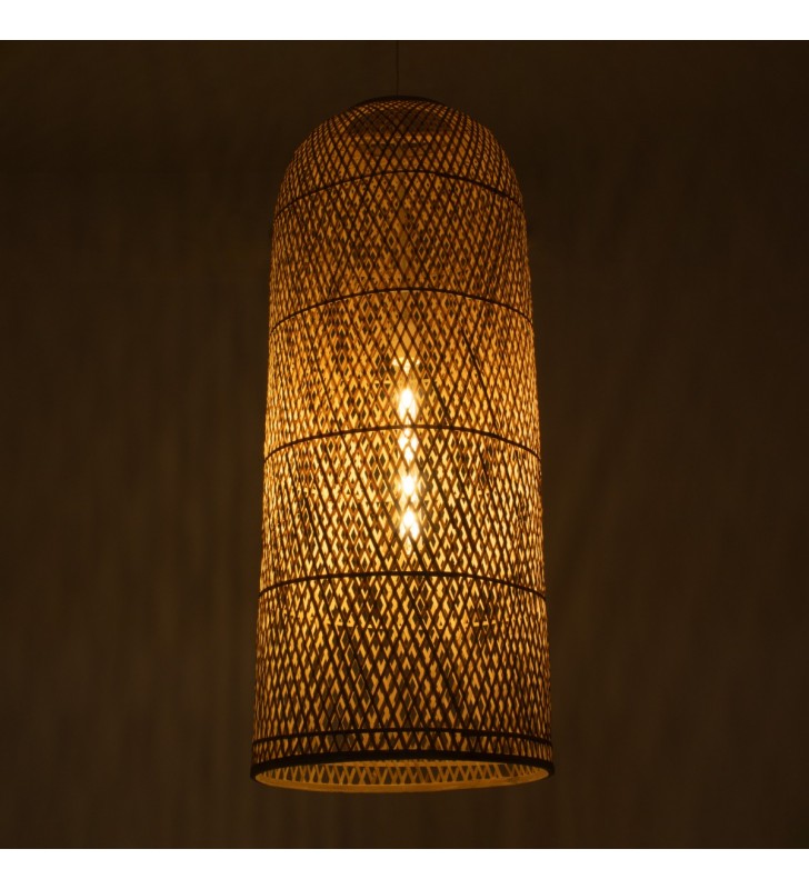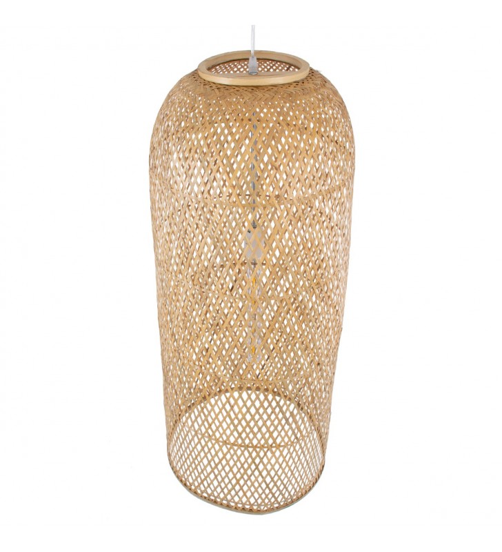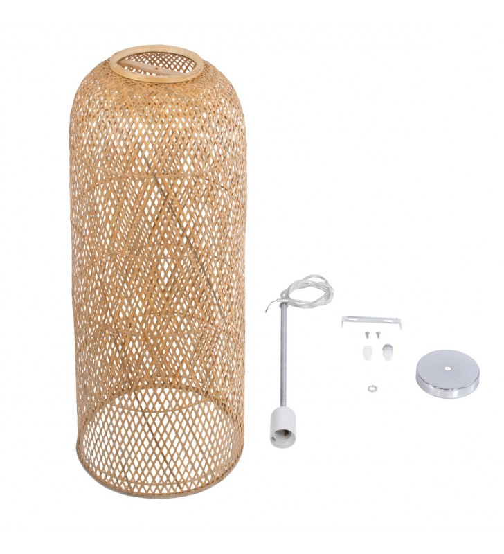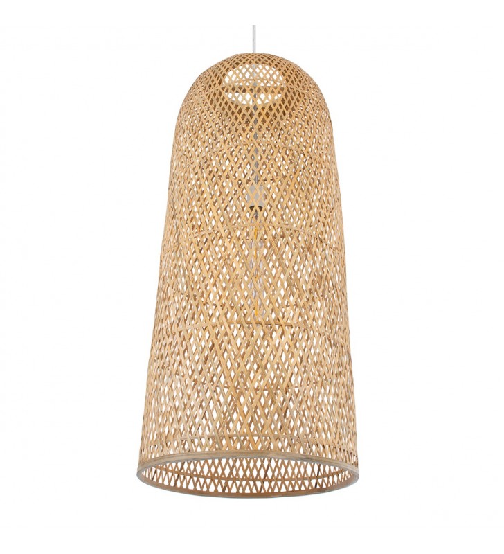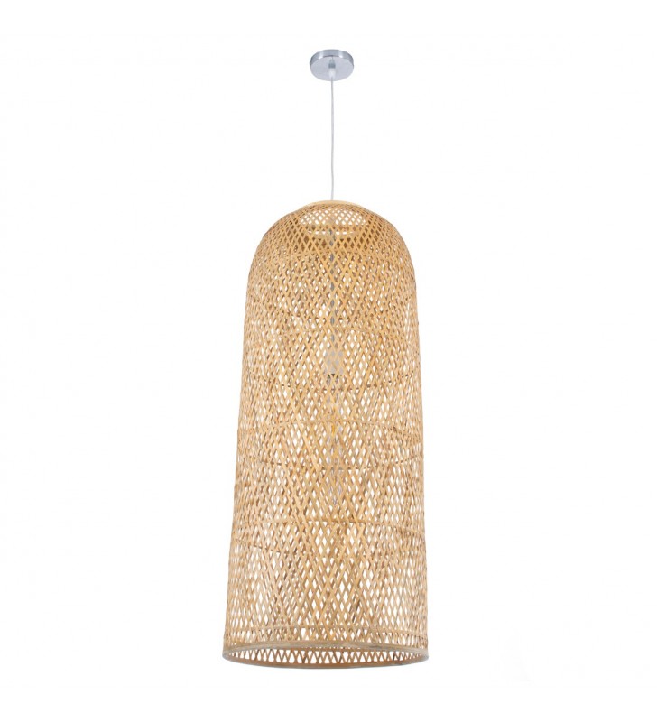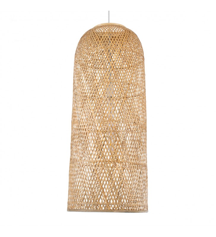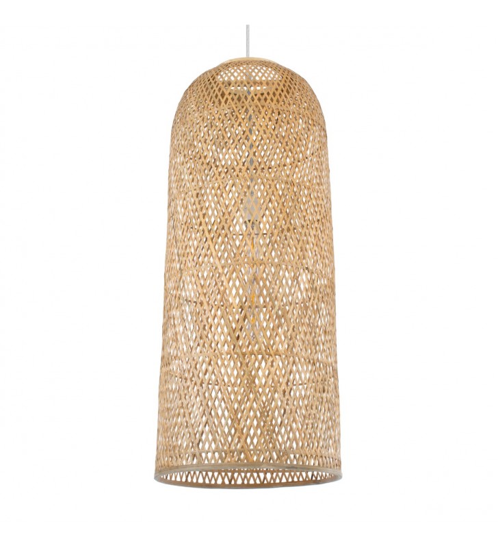 GloboStar® CALERO 01712 Μοντέρνο Κρεμαστό Φωτιστικό Οροφής Μονόφωτο 1 x E27 Μπεζ Μπαμπού Καμπάνα Φ40 x Υ90cm