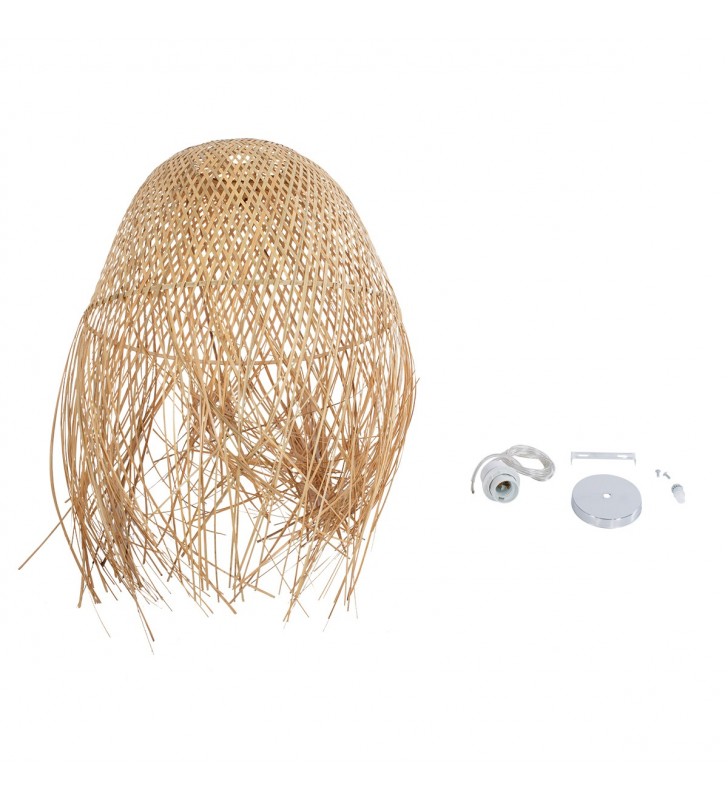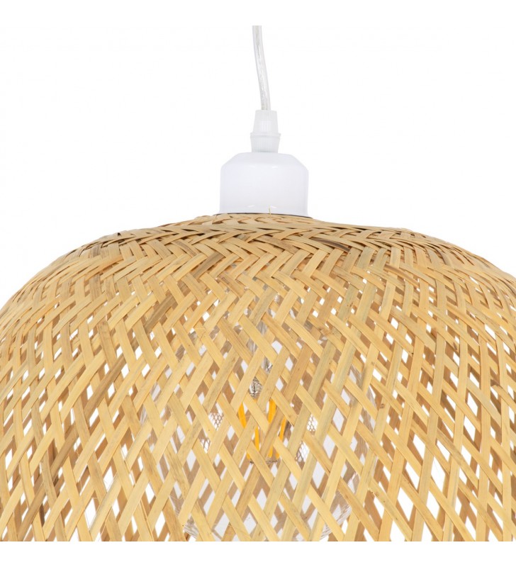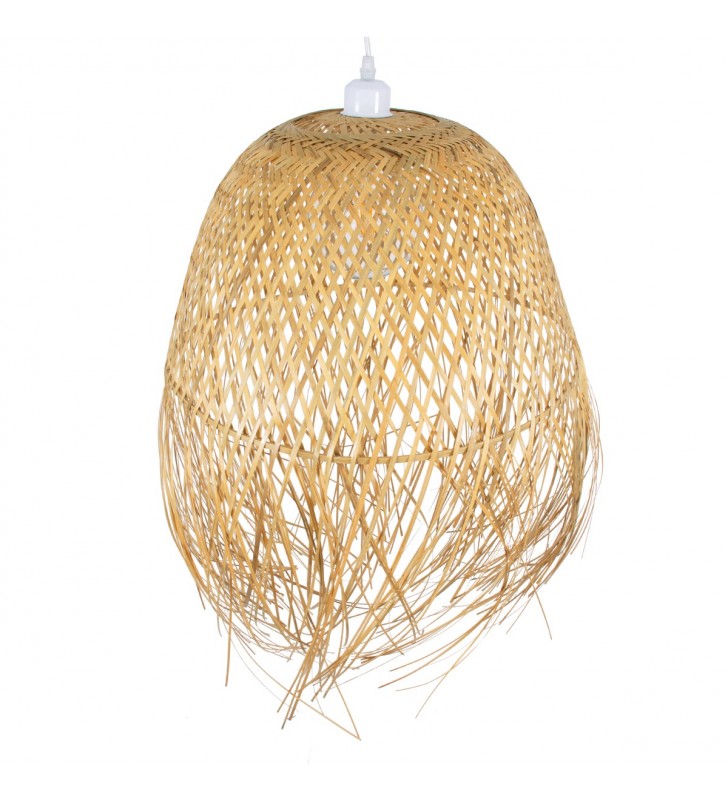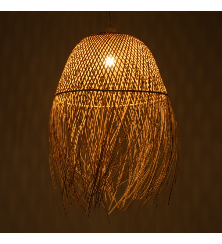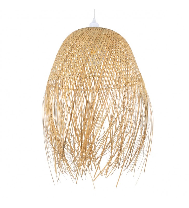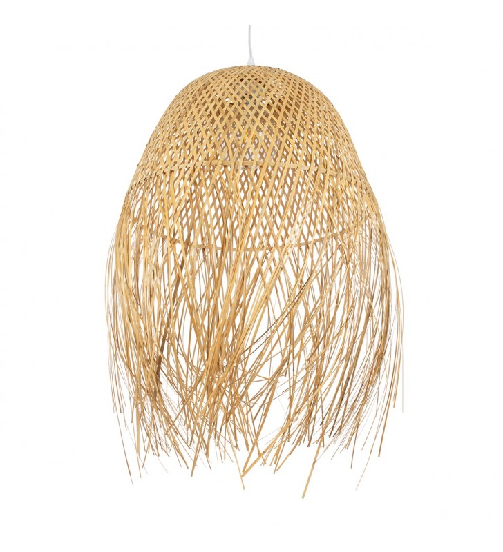 GloboStar® MANILA 01714 Μοντέρνο Κρεμαστό Φωτιστικό Οροφής Μονόφωτο 1 x E27 Μπεζ Μπαμπού Καμπάνα Φ45 x Υ60cm