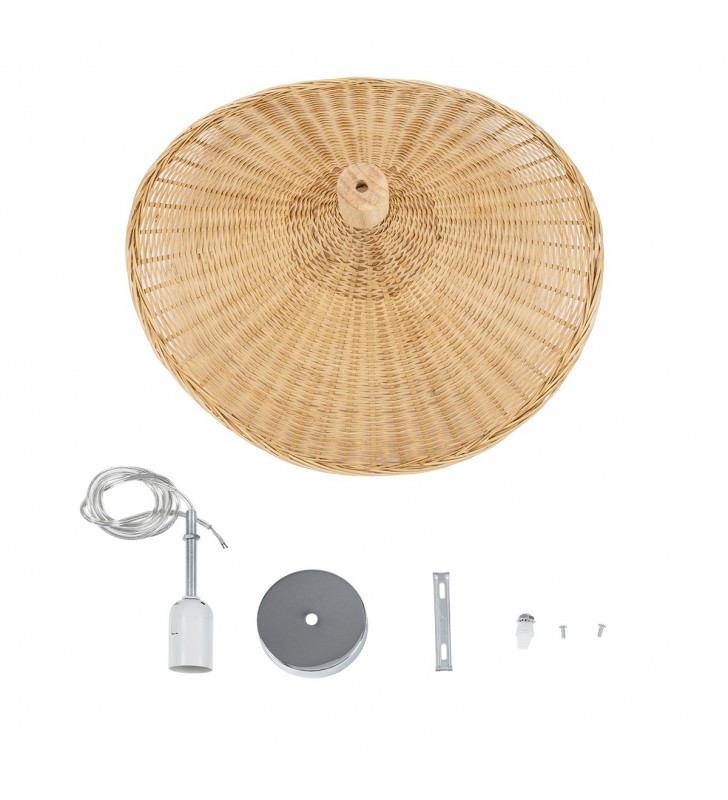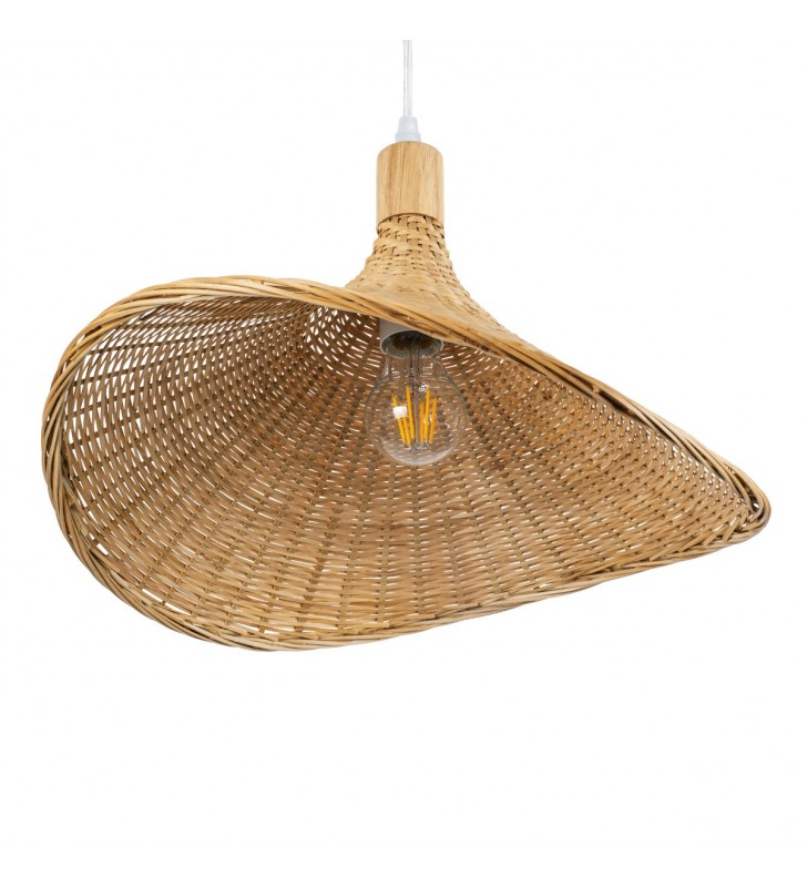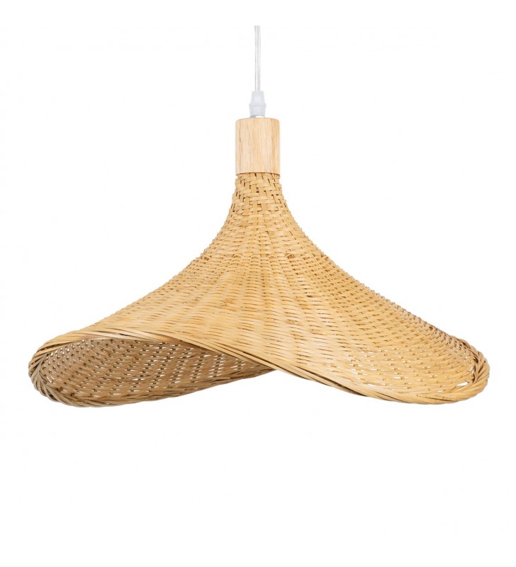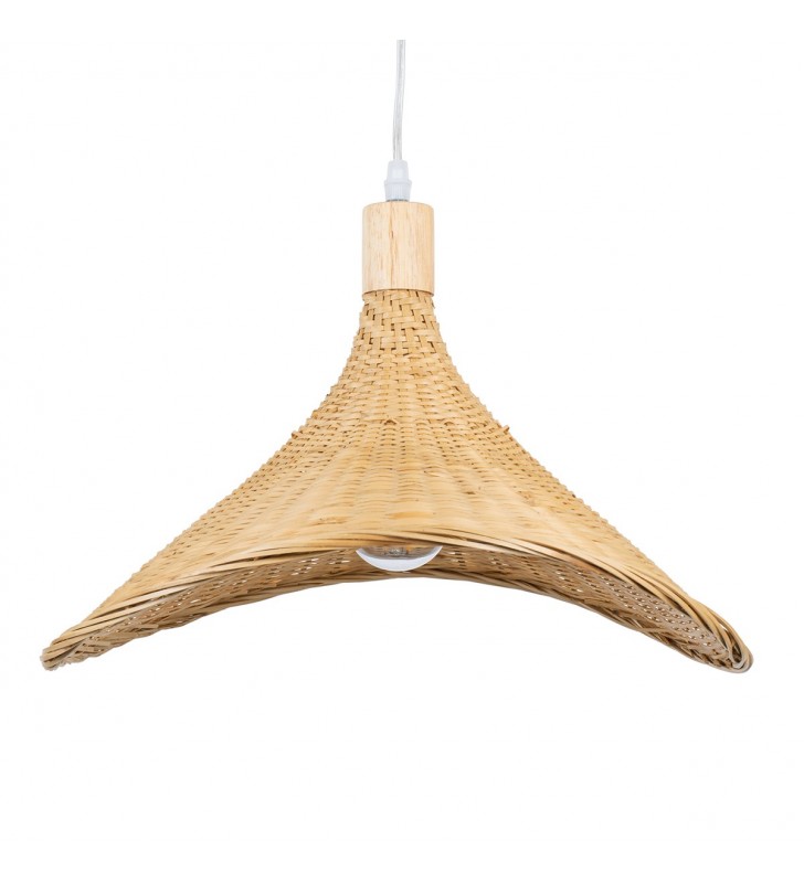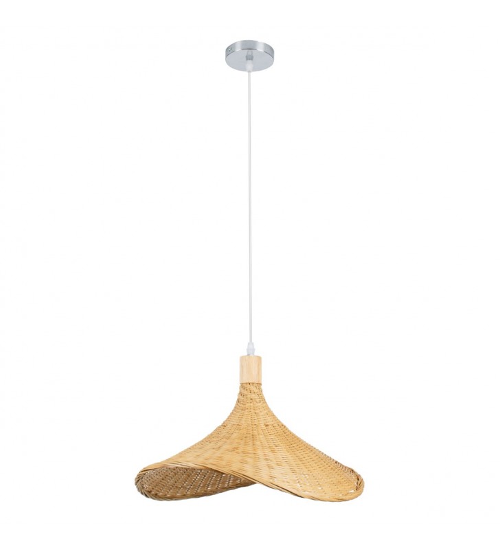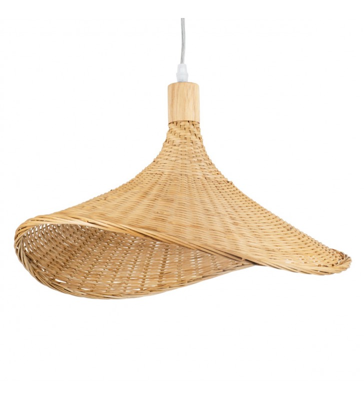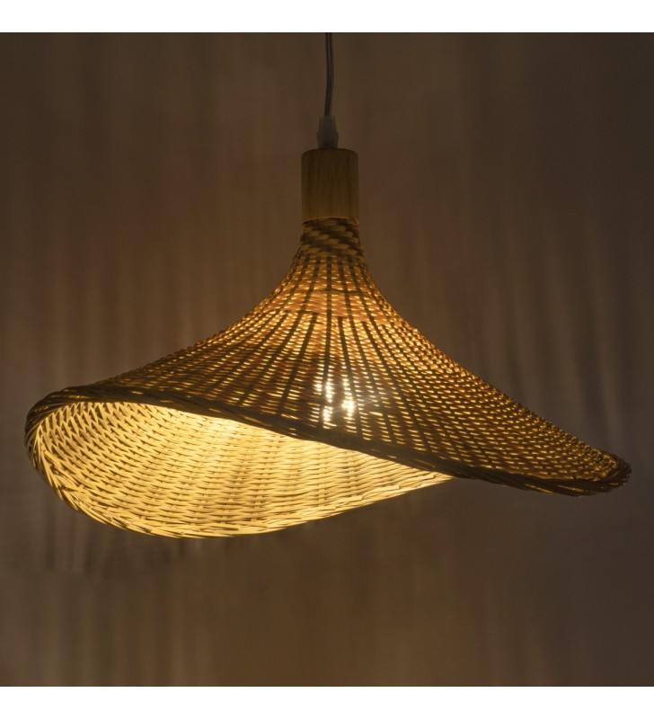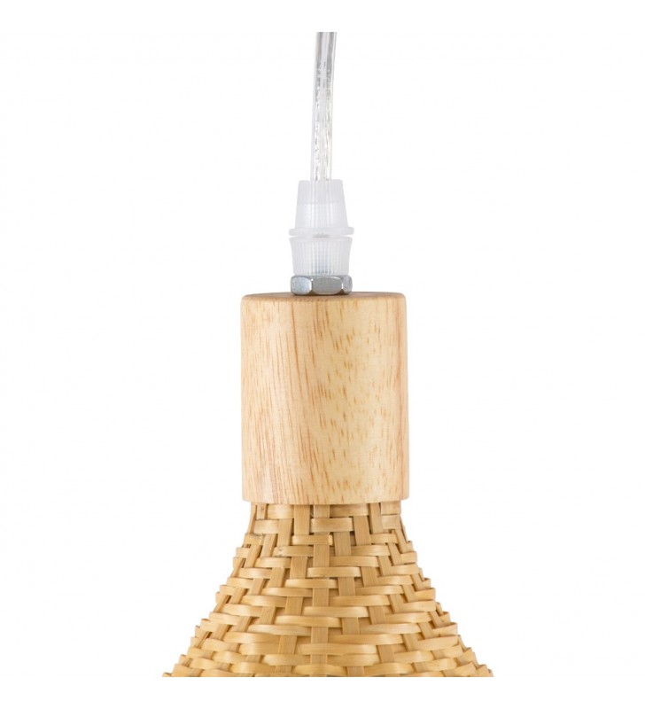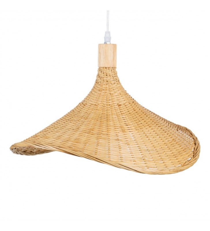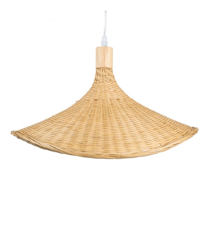 GloboStar® CUBA 01717 Vintage Κρεμαστό Φωτιστικό Οροφής Μονόφωτο 1 x E27 Μπεζ Ξύλινο Bamboo Φ43 x Y30cm