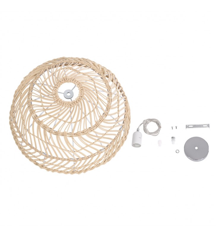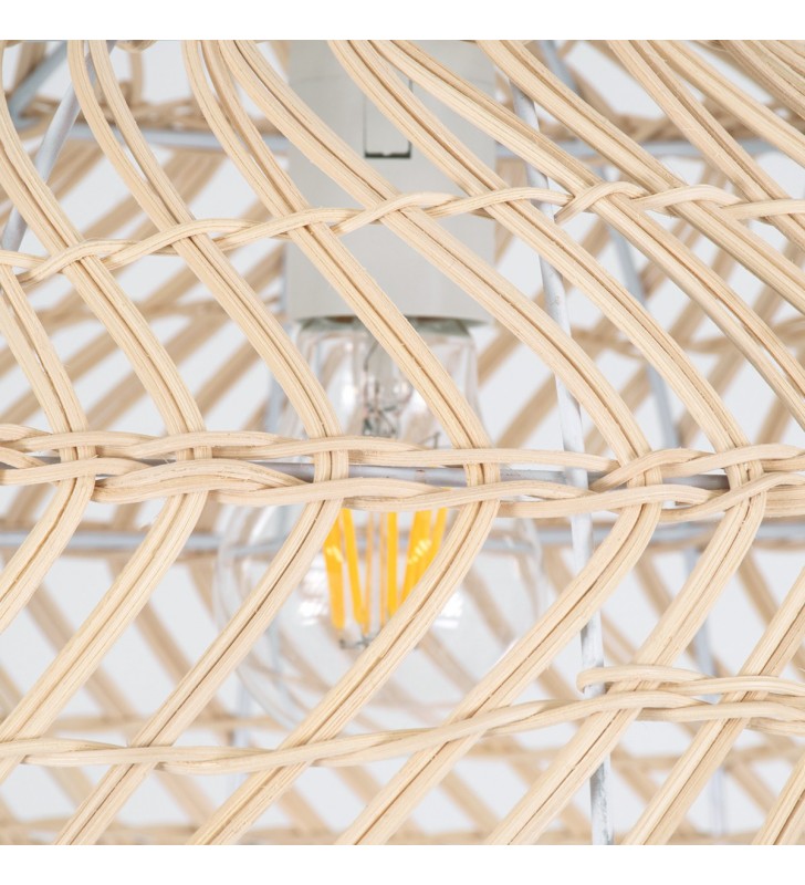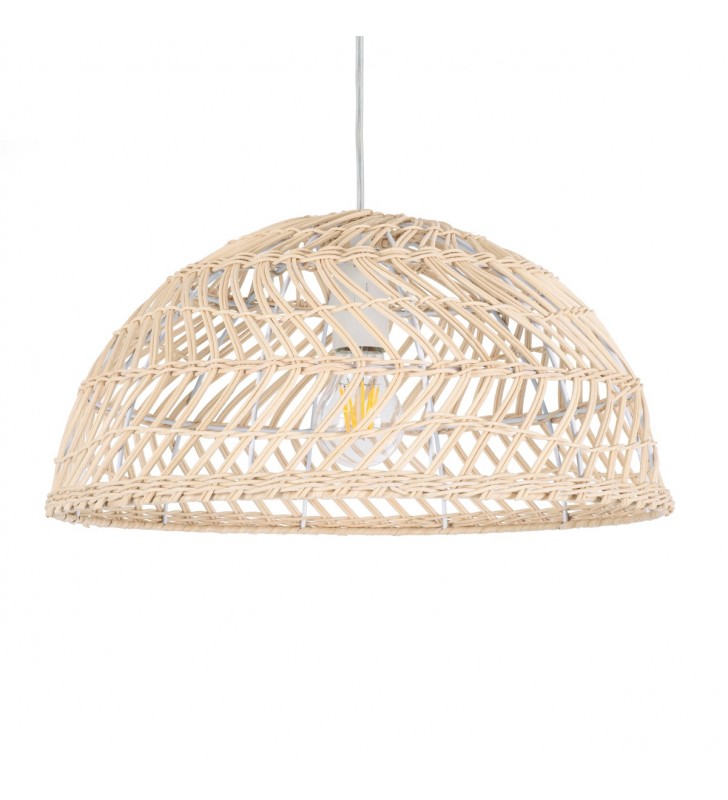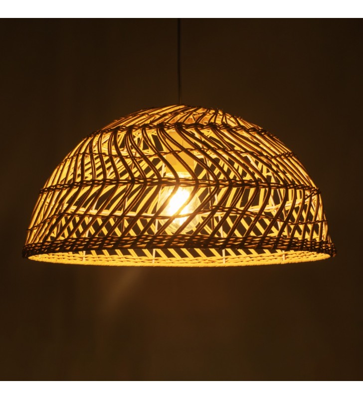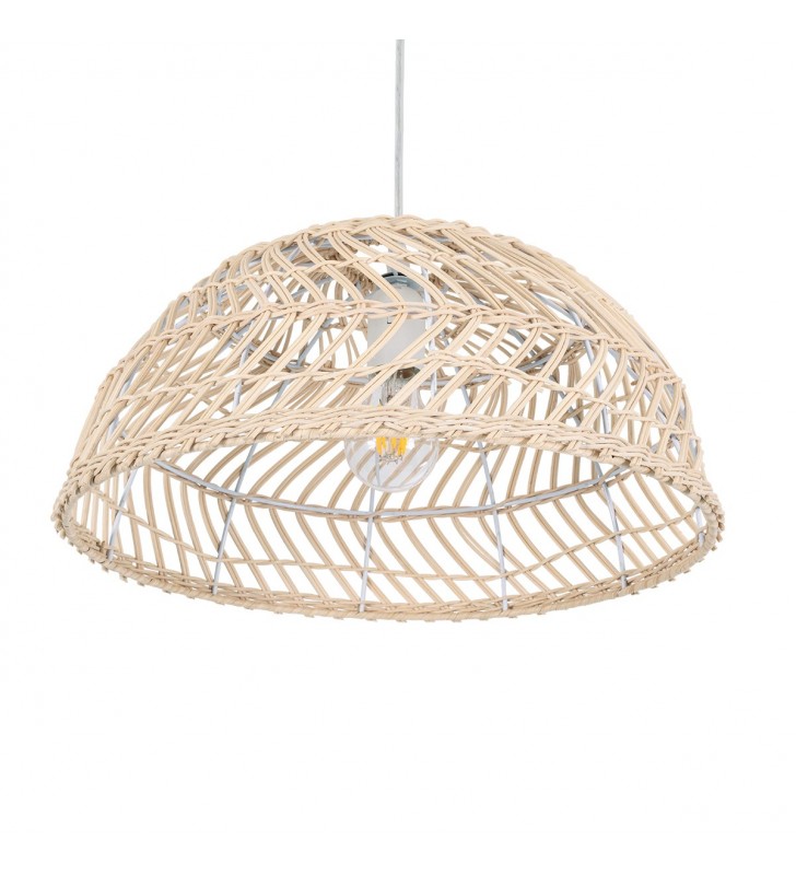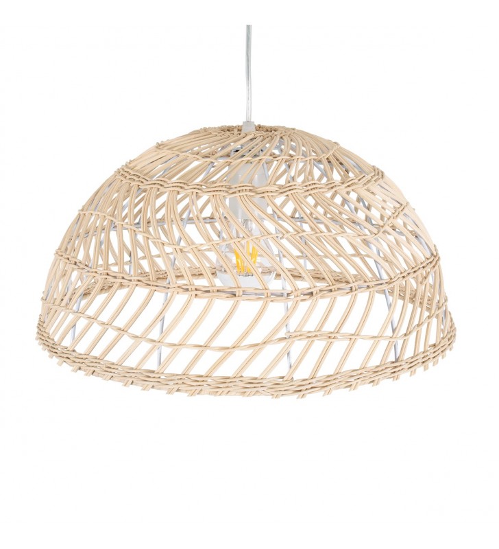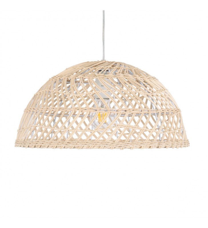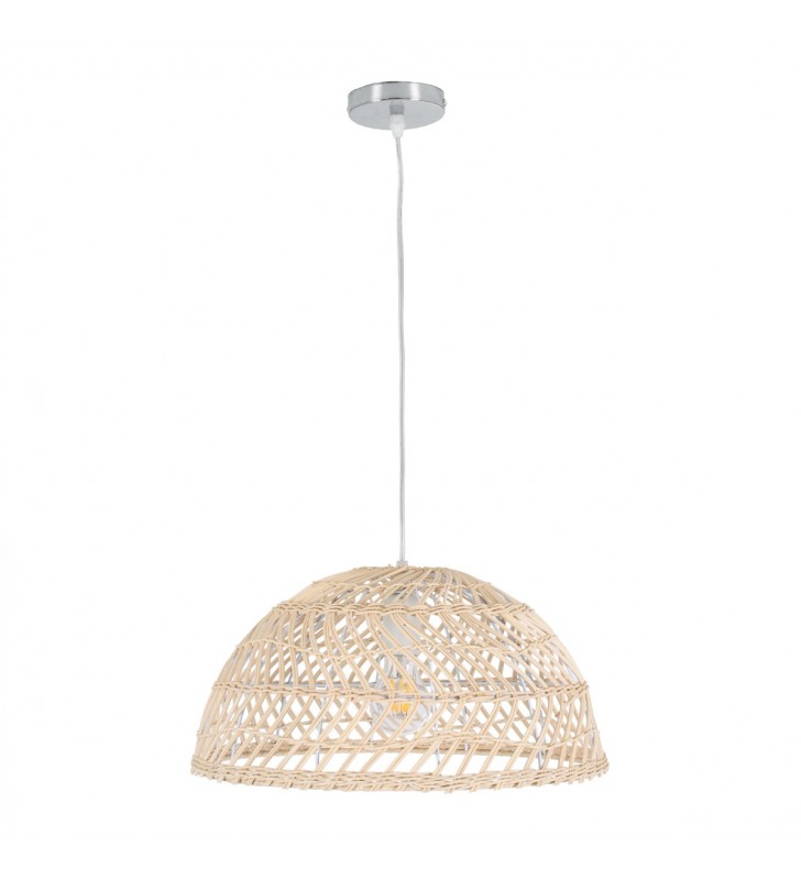 GloboStar® COMORES 01727 Μοντέρνο Κρεμαστό Φωτιστικό Οροφής Μονόφωτο 1 x E27 Μπεζ Μπαμπού Καμπάνα Φ40 x Υ20cm