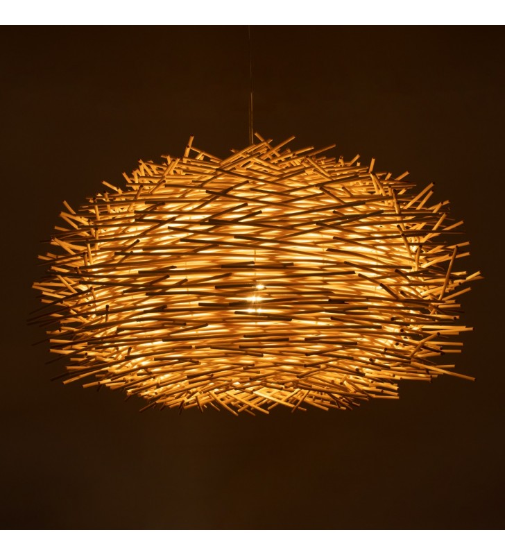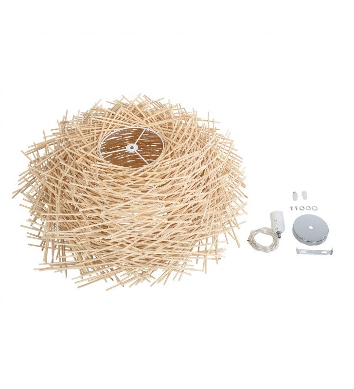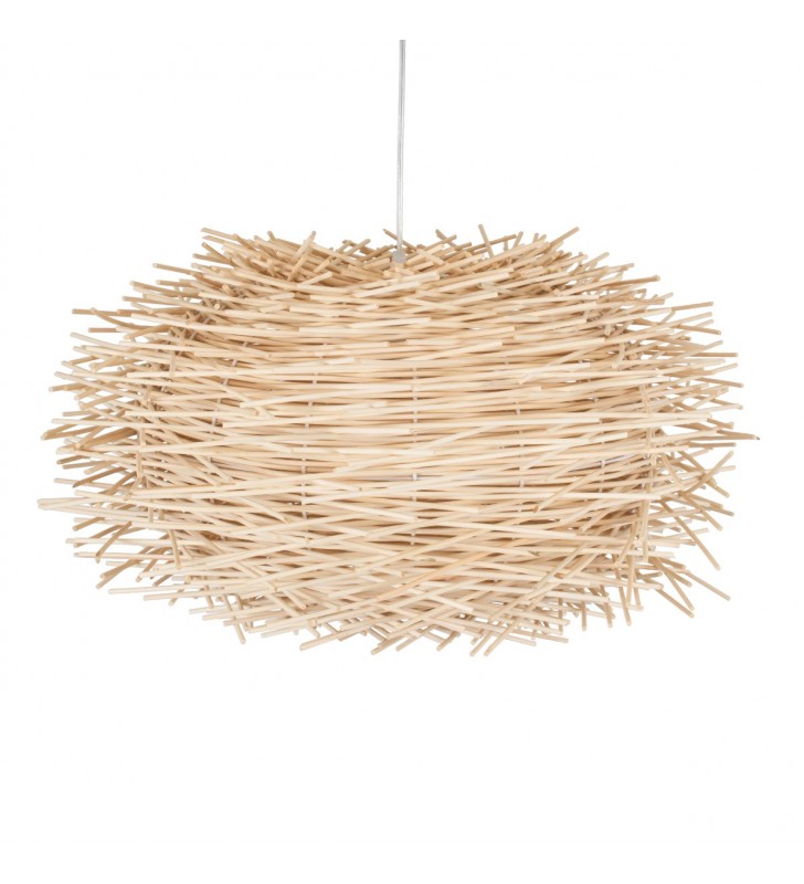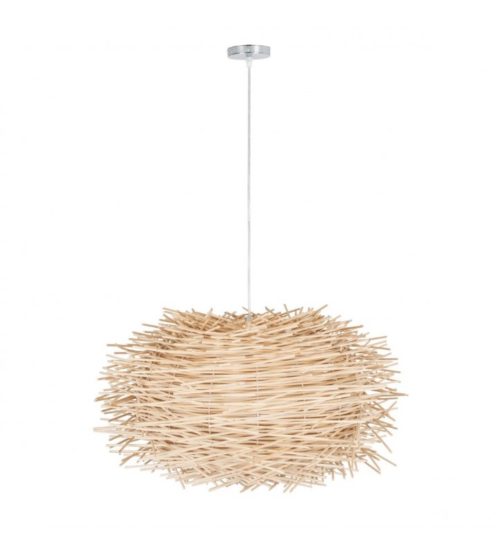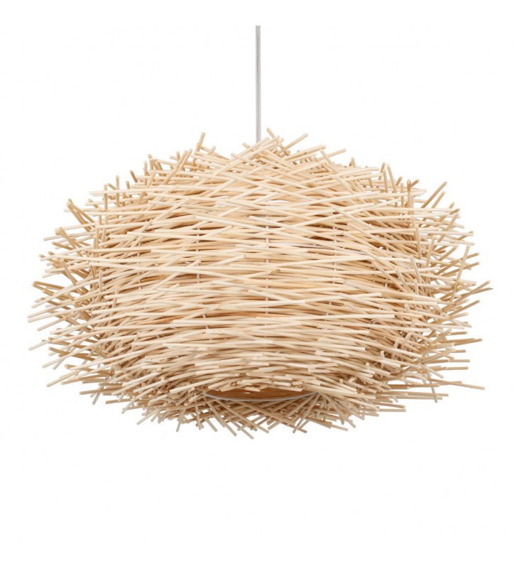 GloboStar® MINORCA 01731 Μοντέρνο Κρεμαστό Φωτιστικό Οροφής Μονόφωτο 1 x E27 Μπεζ Μπαμπού Καμπάνα Φ60 x Υ35cm