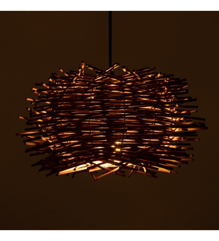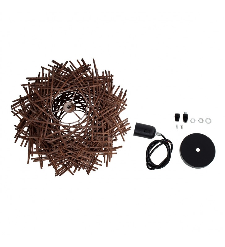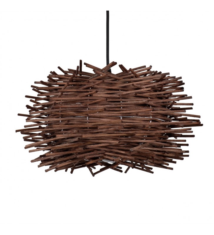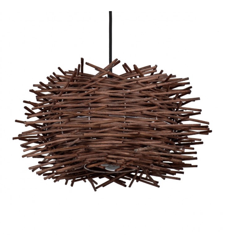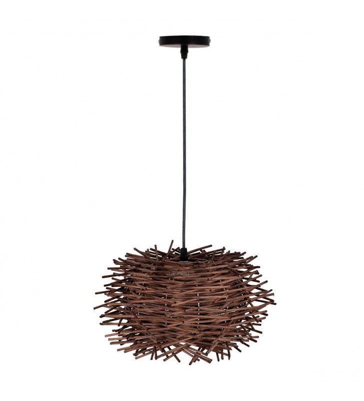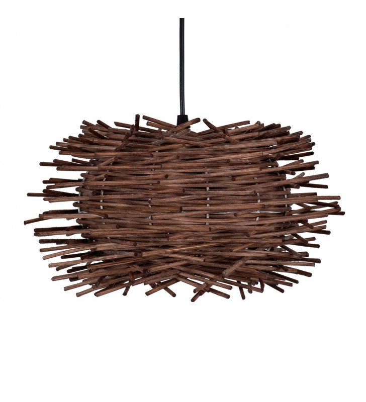 GloboStar® MINORCA 01732 Μοντέρνο Κρεμαστό Φωτιστικό Οροφής Μονόφωτο 1 x E27 Καφέ Μπαμπού Καμπάνα Φ30 x Υ18cm