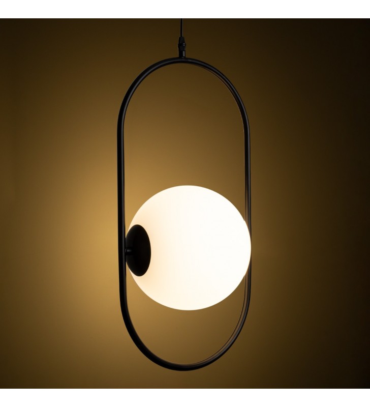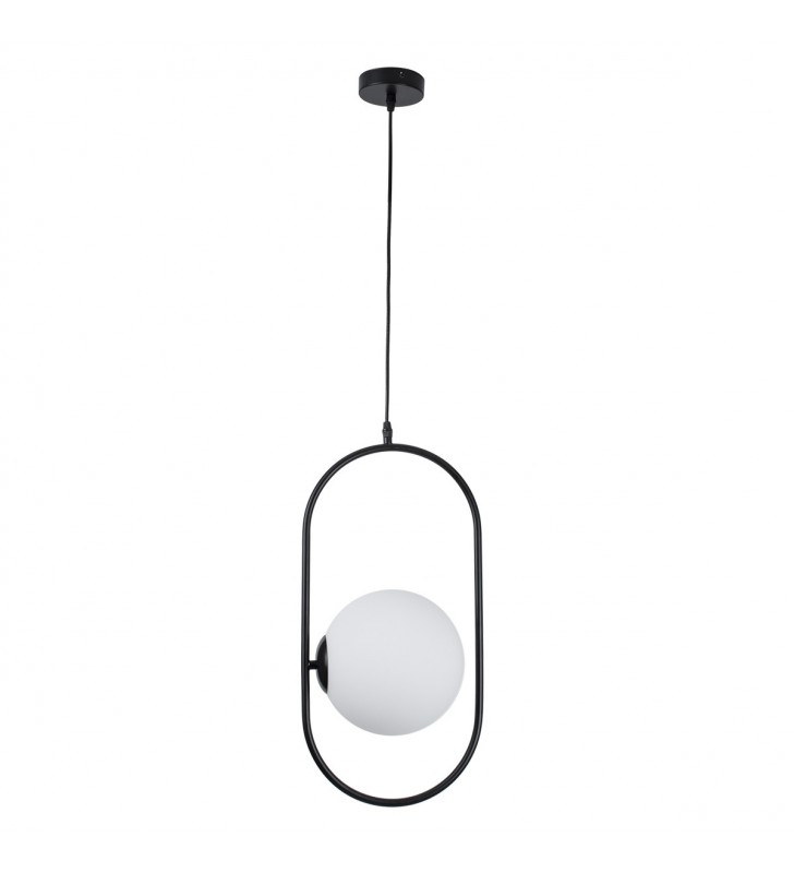 GloboStar® HAMBURG 00591 Μοντέρνο Κρεμαστό Φωτιστικό Οροφής Μονόφωτο 1 x E27 Μαύρο Μεταλλικό Γυάλινο Μπάλα Μ25 x Π20 x Υ50cm