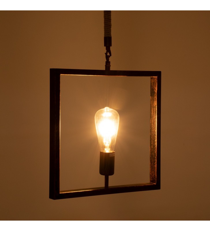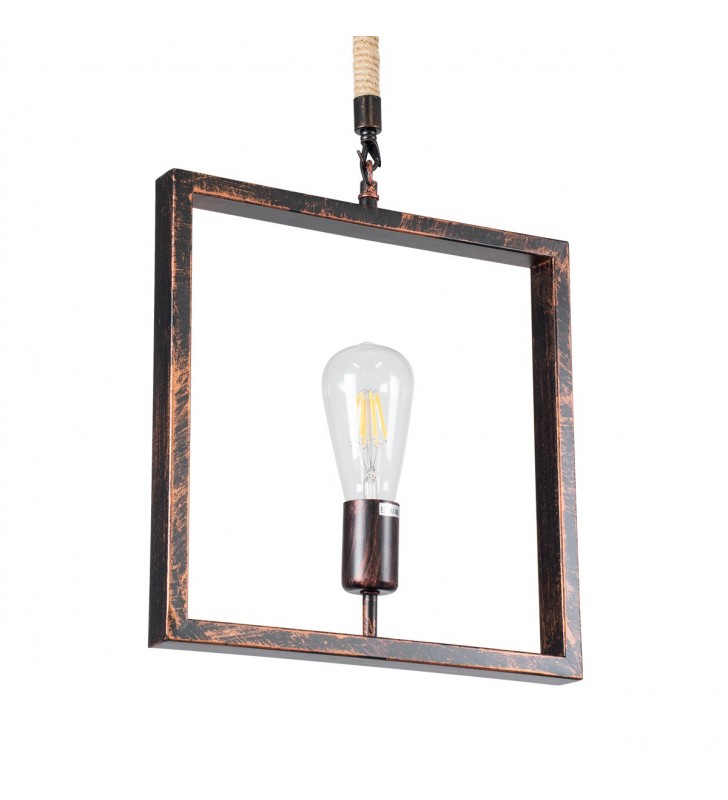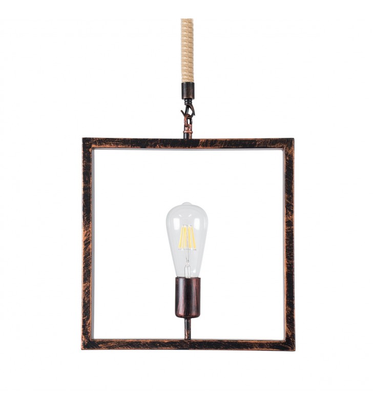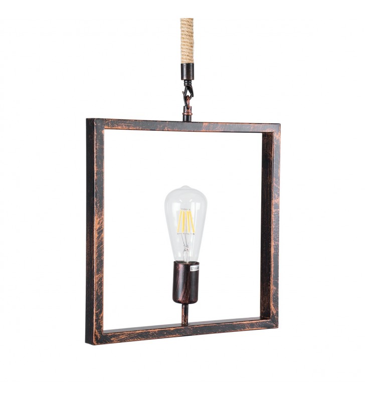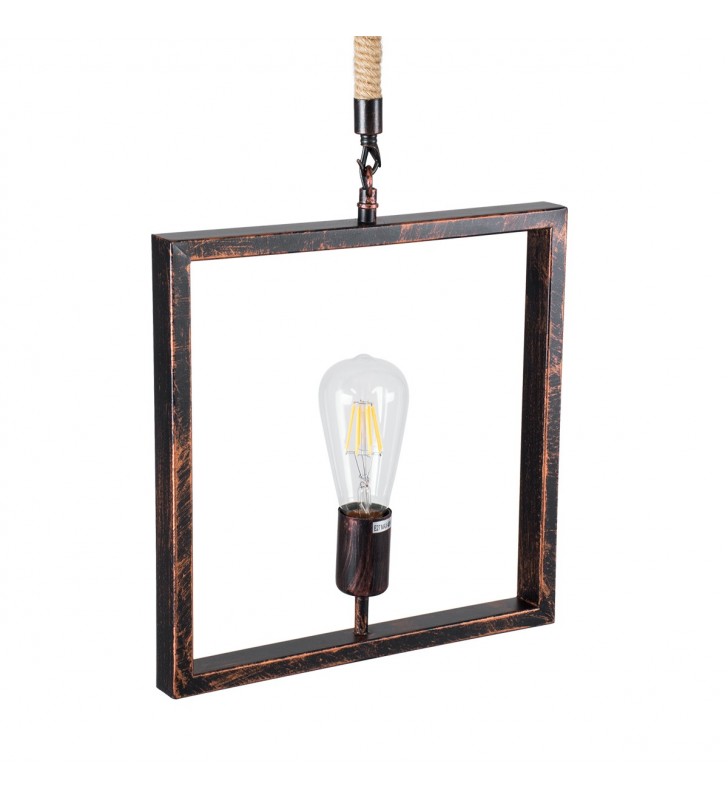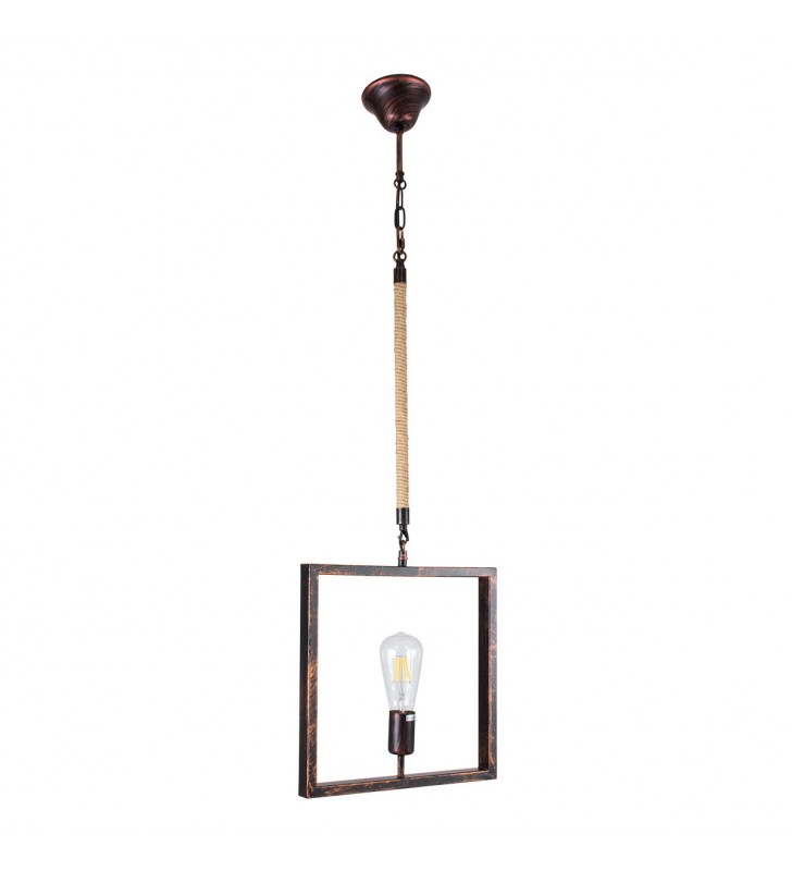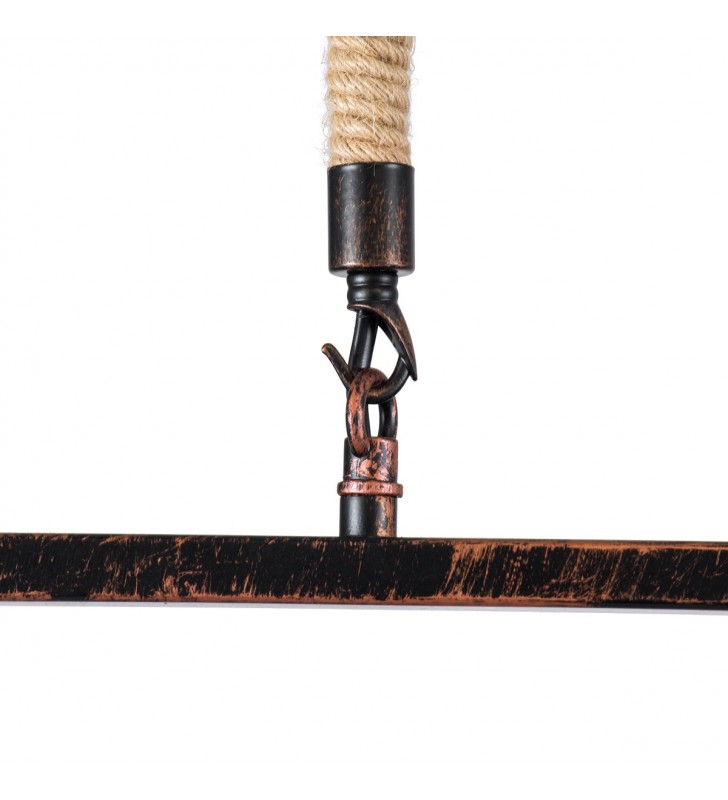 GloboStar® FRAISE 01814 Vintage Κρεμαστό Φωτιστικό Οροφής Μονόφωτο 1 x E27 Καφέ Σκουριά Μεταλλικό με Μπεζ Σχοινί Μ32 x Π4 x Υ32cm