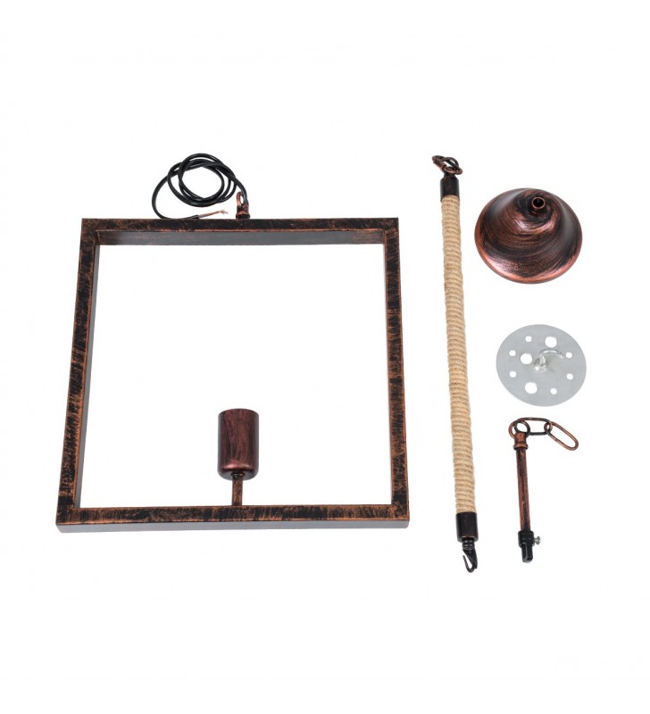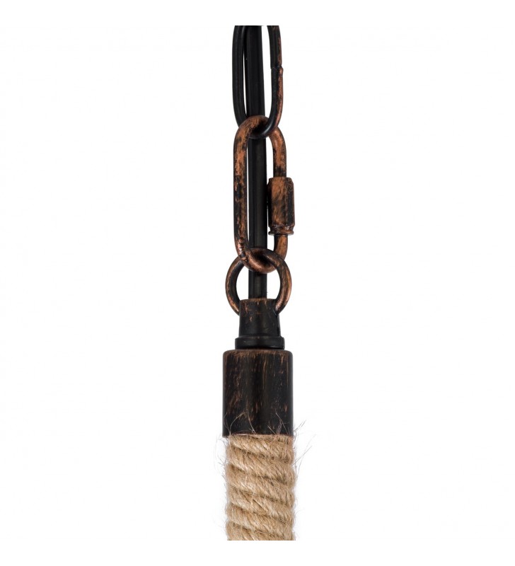 GloboStar FRAISE 01814 Vintage Φωτιστικό Οροφής Μονόφωτο Καφέ Σκουριά Μεταλλικό με Μπεζ Σχοινί