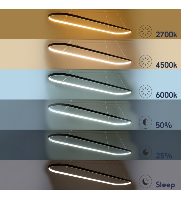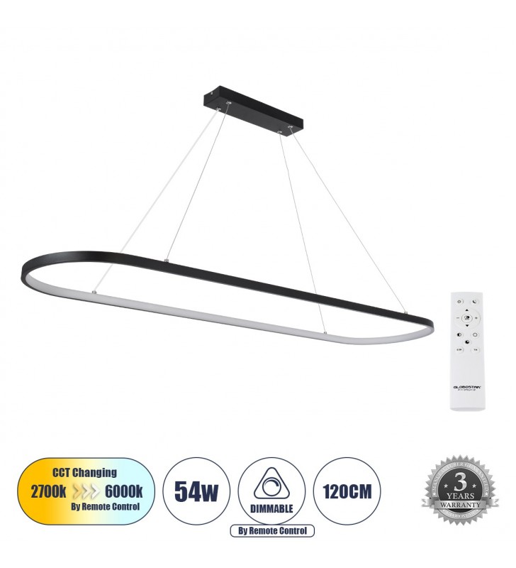 GloboStar® BOLIVAR 61271 Κρεμαστό Φωτιστικό Οροφής Design LED CCT 54W 6210lm 300° AC 220-240V - Εναλλαγή Φωτισμού μέσω Τηλεχειριστηρίου All In One Ψυχρό 6000k+Φυσικό 4500k+Θερμό 2700k Dimmable Μ120 x Π30 x Υ2cm - Μαύρο - 3 Years Warranty