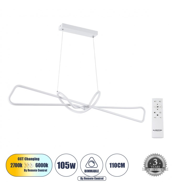 GloboStar® DOLORES 61280 Κρεμαστό Φωτιστικό Οροφής Design LED CCT 105W 11760lm 300° AC 220-240V - Εναλλαγή Φωτισμού μέσω Τηλεχειριστηρίου All In One Ψυχρό 6000k+Φυσικό 4500k+Θερμό 2700k Dimmable Μ110 x Π17 x Υ17.5cm - Λευκό - 3 Years Warranty