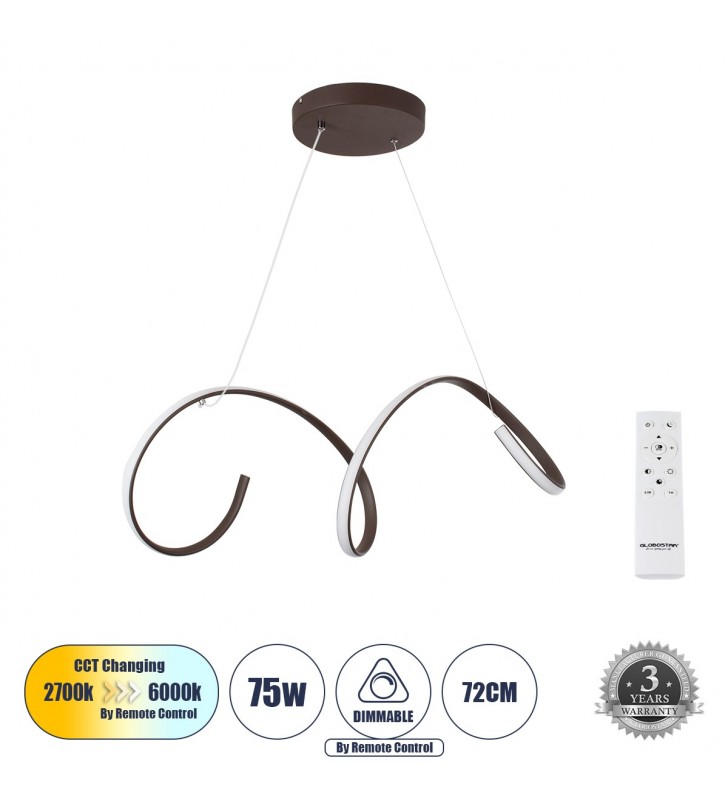 GloboStar MINORCA 01734 Κρεμαστό Φωτιστικό Οροφής Μονόφωτο Καφέ Μπαμπού Καμπάνα Φ60 x Υ35cm