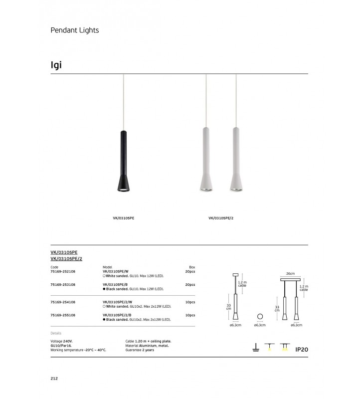 Φωτιστικό κρεμαστό αλουμινίου, 240V, 2xGU10, Max 2x12W (LED), IP20, 2xo6(26)x150cm, μαύρο