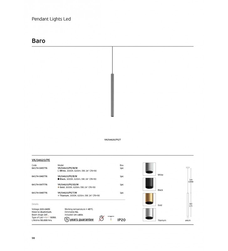 - Fitting: LED Pendant