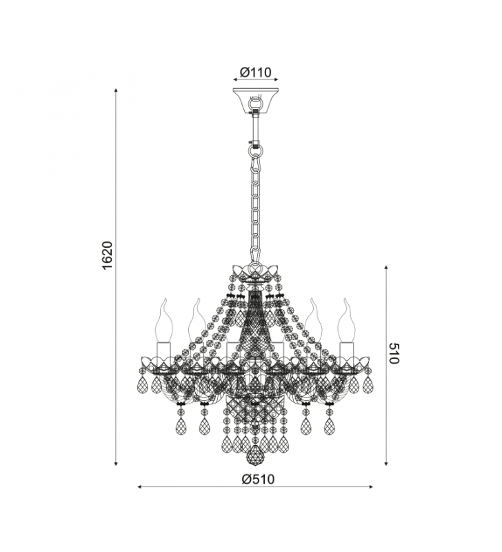 ΚΡΕΜΑΣΤΟ Φ/Σ 6ΧΕ14 ΔΙΑΦΑΝΟ ΚΡΥΣΤΑΛ+ΧΡΩΜΙΟ ΜΕΤΑΛΛΟ Φ51ΧH162CM GLADIOLO - ACA (BLK80416PCC)