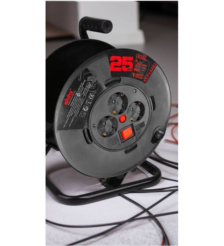 ELP43252 | ΜΠΑΛΑΝΤΕΖΑ ΚΑΡΟΥΛΙ ΠΛΑΣΤΙΚΟ 3Θ x16A +ΔΙΑΚ.+ΚΑΛ.25mt IP20 ΜΑΥΡΟ - Elvhx