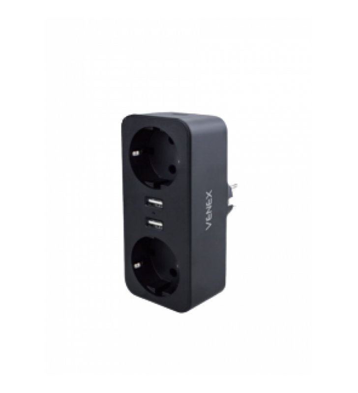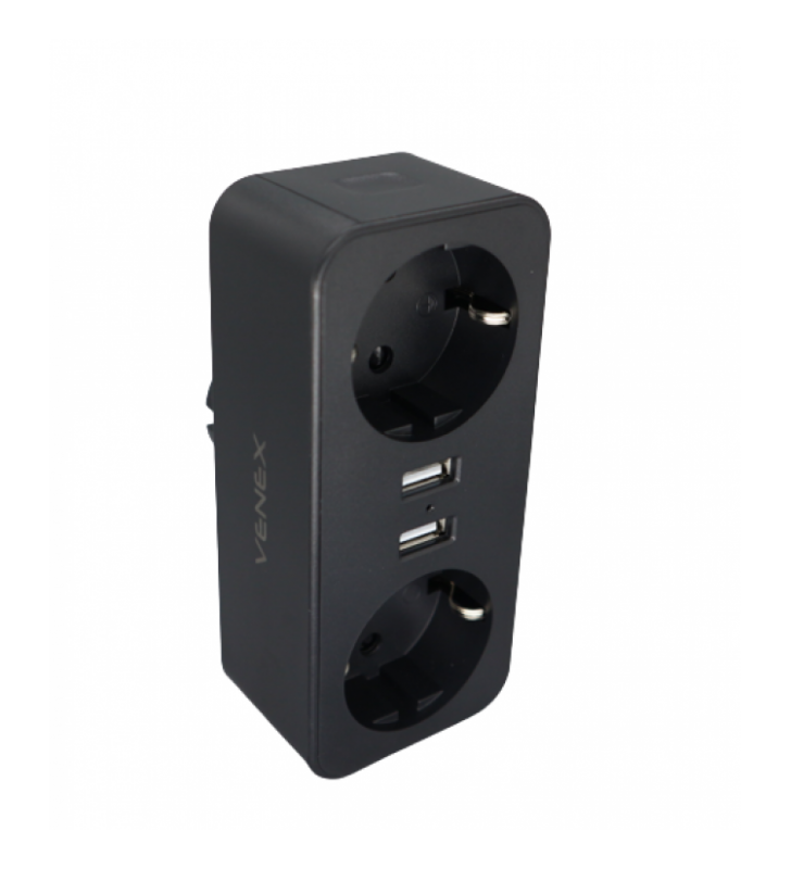 ELP31402 | ΑΝΤΑΠΤOΡΑΣ SCHUKO → 4Θ ΙΙ x16A max:2300W IP20 ΜΑΥΡΟ - Elvhx