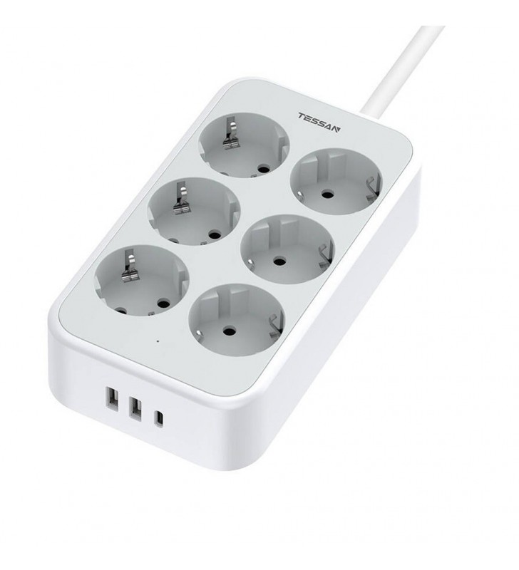 TESSAN 9 IN 1 POWER STRIP 25W 6xSCHUKO, 2xUSB, 1xTYPE-C 2M CABLE - TESSAN (TS-PS02DE00)