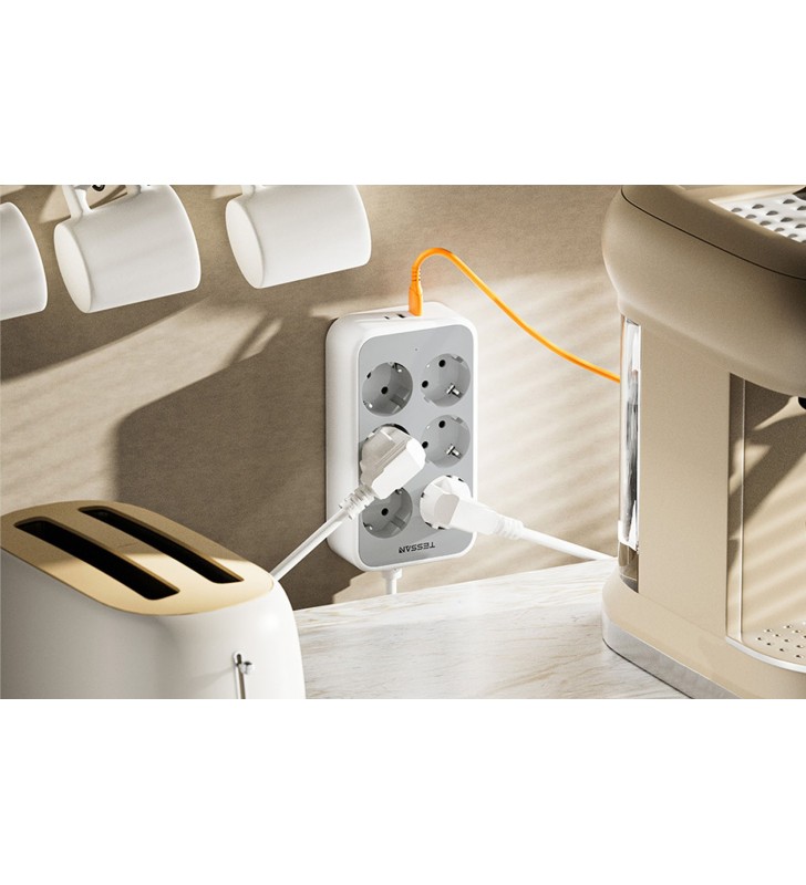Το πολύπριζο <strong> TESSAN TS-PS02DE00</strong> θα σας βοηθήσει να διαχειριστείτε πολλές ηλεκτρικές συσκευές στο σπίτι ή το γραφείο σας καθημερινά. Με την ικανότητα να συνδέετε ταυτόχρονα έως και έξι βύσματα, προσφέρει απόλυτη άνεση, εξαλείφοντας την ανάγκη για πολλαπλές ξεχωριστές πρίζες. Εξοπλισμένη με θύρες USB-A και USB-C, σας επιτρέπει να φορτίζετε τις κινητές συσκευές σας χωρίς να χρειάζεστε ξεχωριστούς φορτιστές.